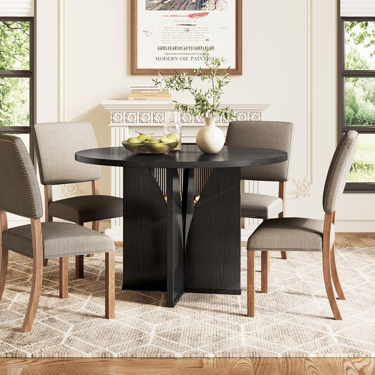 LITTLE TREE 39-Inch Dining Table for 4, Rustic Kitchen Table, Round Dining Table with X-Shaped Stable Pedestal, Farmhouse Dinner Table for Dining Room, Living Room, Black