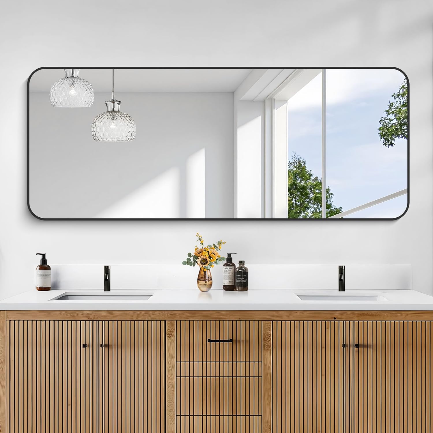 KOCUUY Black Bathroom Mirror 60"x24", Large Vanity Mirror with Rounded Corner, Metal Black Frame with Mordern Design for Bathroom, Living Room, Entryway, Hang Horizontal/Vertical