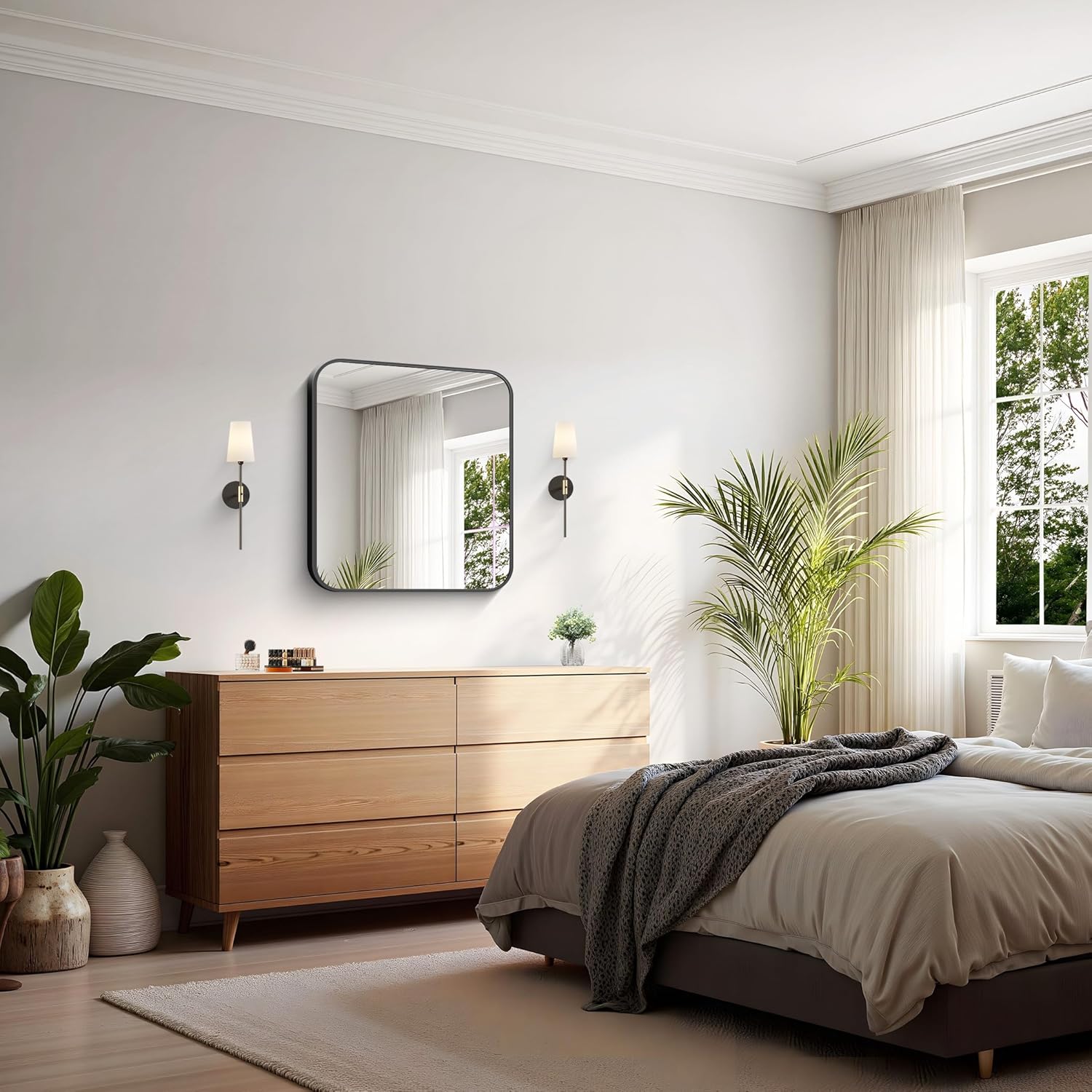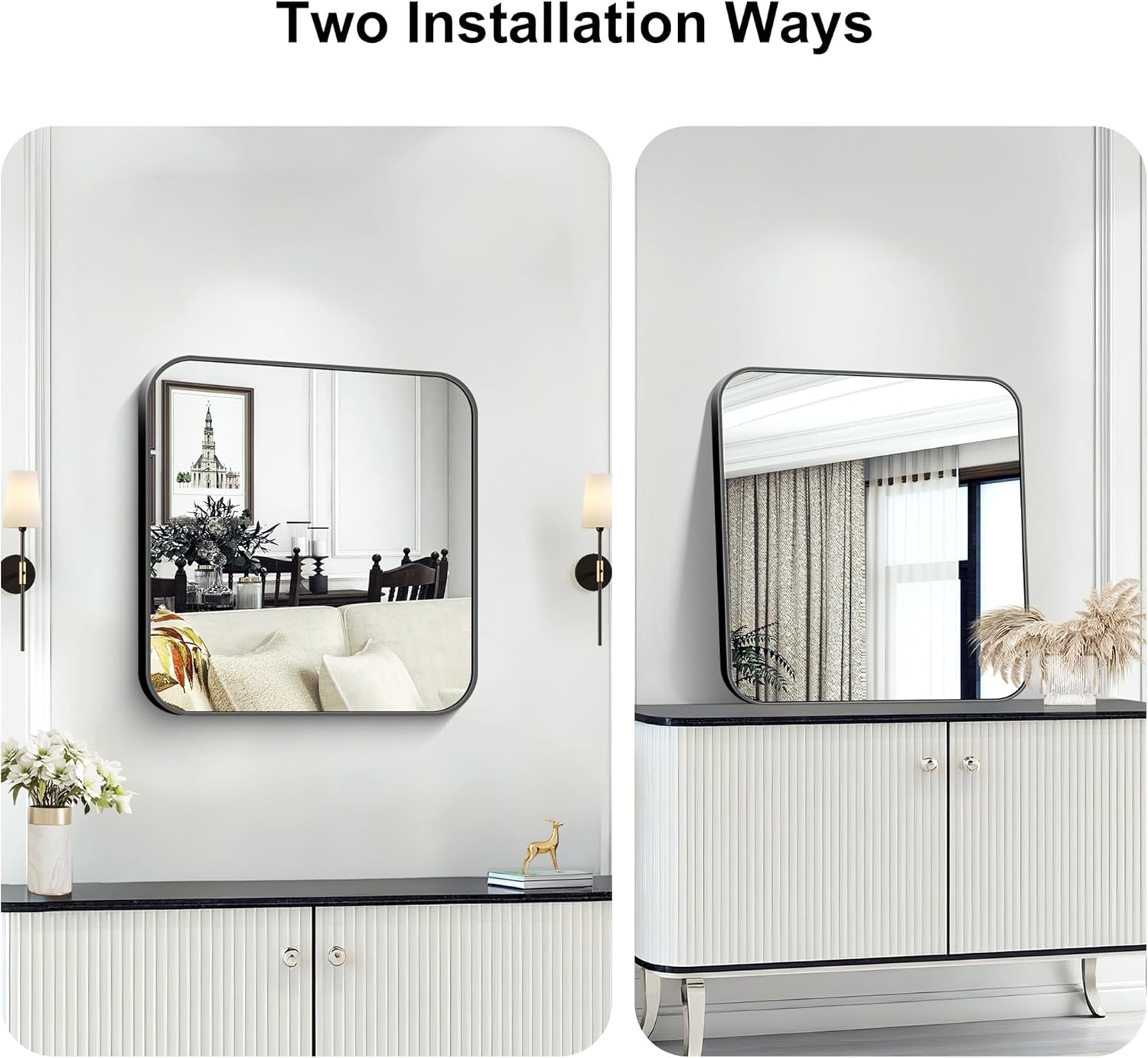- Multi-Sizing for Every Option:KOCUUY 24"x24" black framed mirror with rounded corners complements large areas, while sizes ranging from 20"x20" to 72"x37" adapt to compact or spacious settings. Elevate any room with its understated elegance and artistic flair.