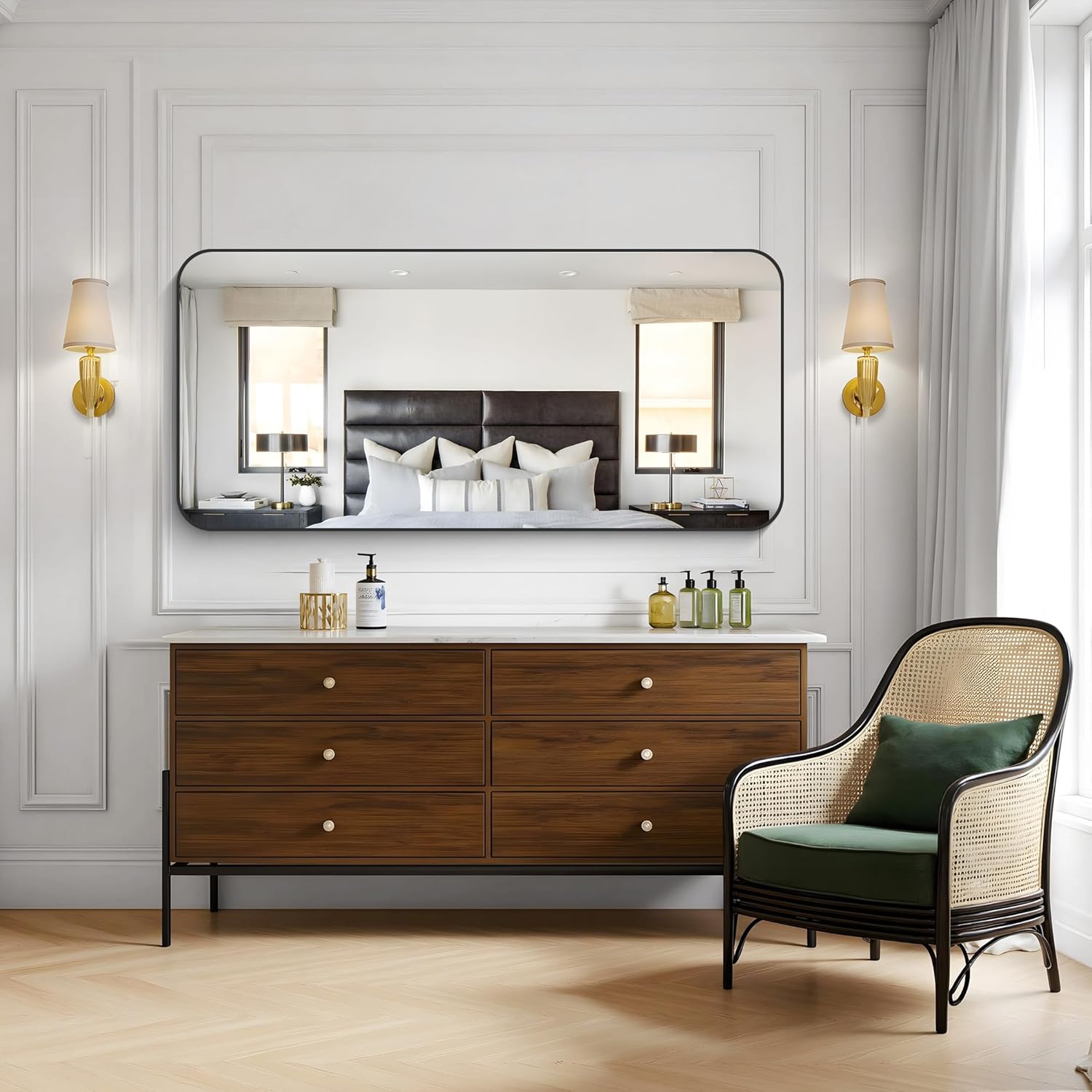 - Multi-Sizing for Every Option:KOCUUY 60"x28" black framed mirror with rounded corners complements large areas, while sizes ranging from 20"x20" to 72"x36" adapt to compact or spacious settings. Elevate any room with its understated elegance and artistic flair.