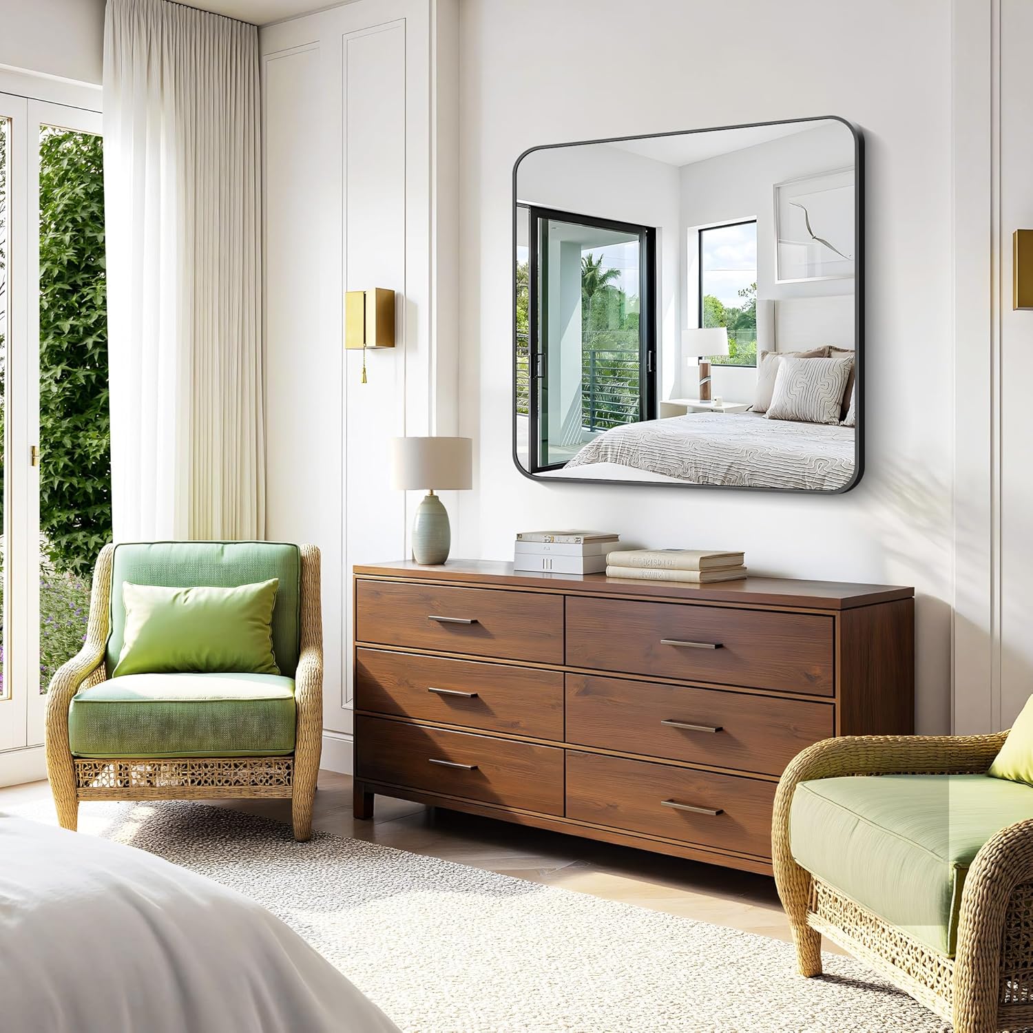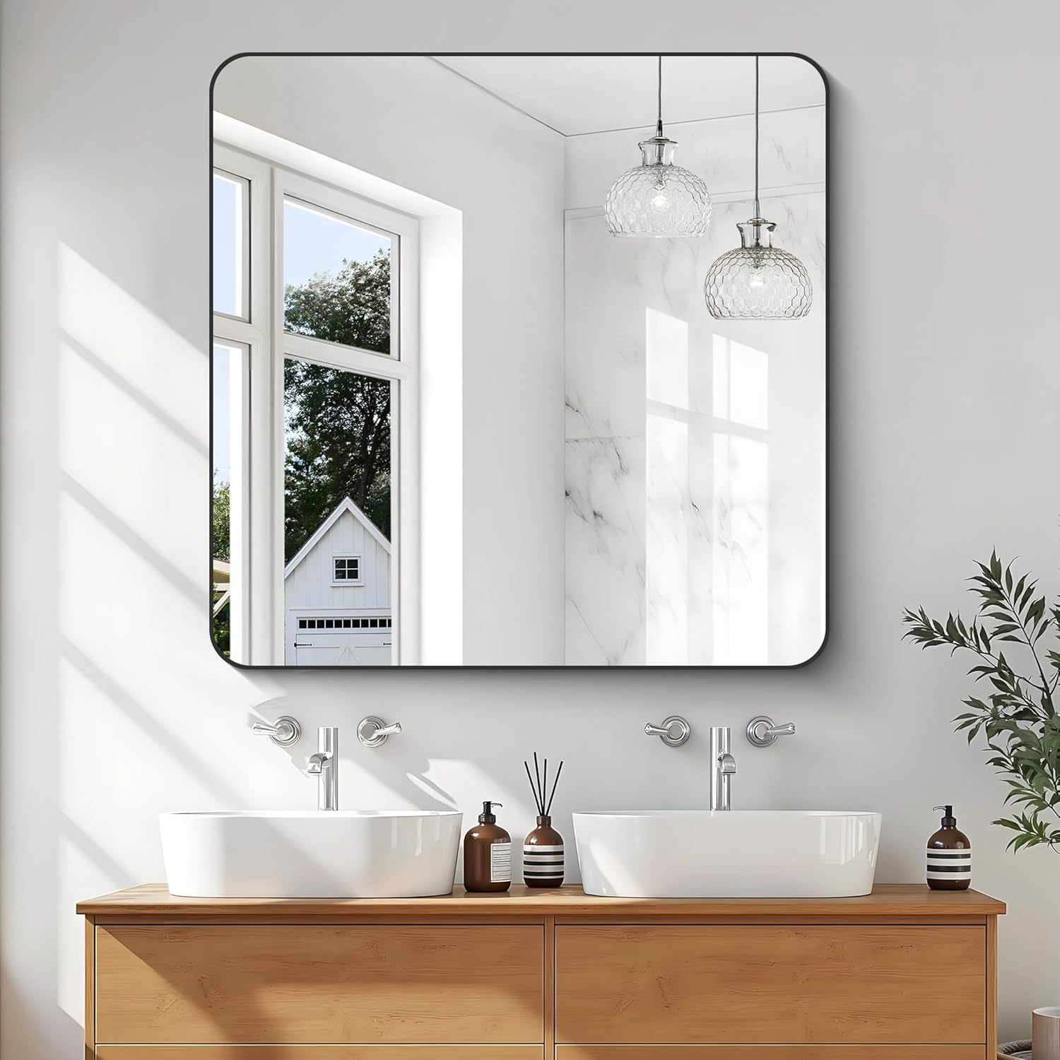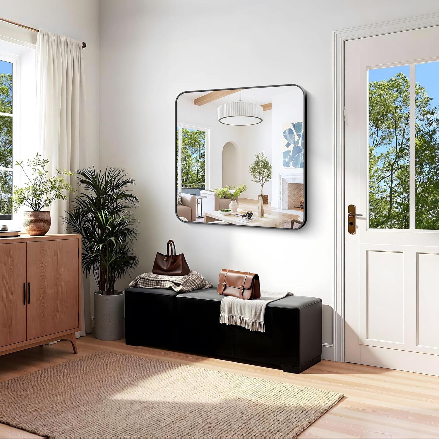 - Multi-Sizing for Every Option:KOCUUY 40"x40" black framed mirror with rounded corners complements large areas, while sizes ranging from 20"x20" to 72"x36" adapt to compact or spacious settings. Elevate any room with its understated elegance and artistic flair.