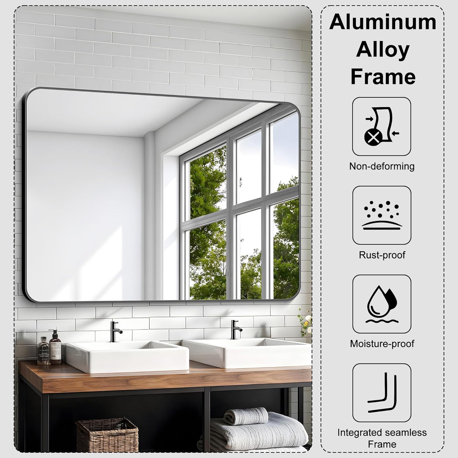 - Multi-Sizing for Every Option:KOCUUY 36"x48" black framed mirror with rounded corners complements large areas, while sizes ranging from 20"x20" to 72"x36" adapt to compact or spacious settings. Elevate any room with its understated elegance and artistic flair.