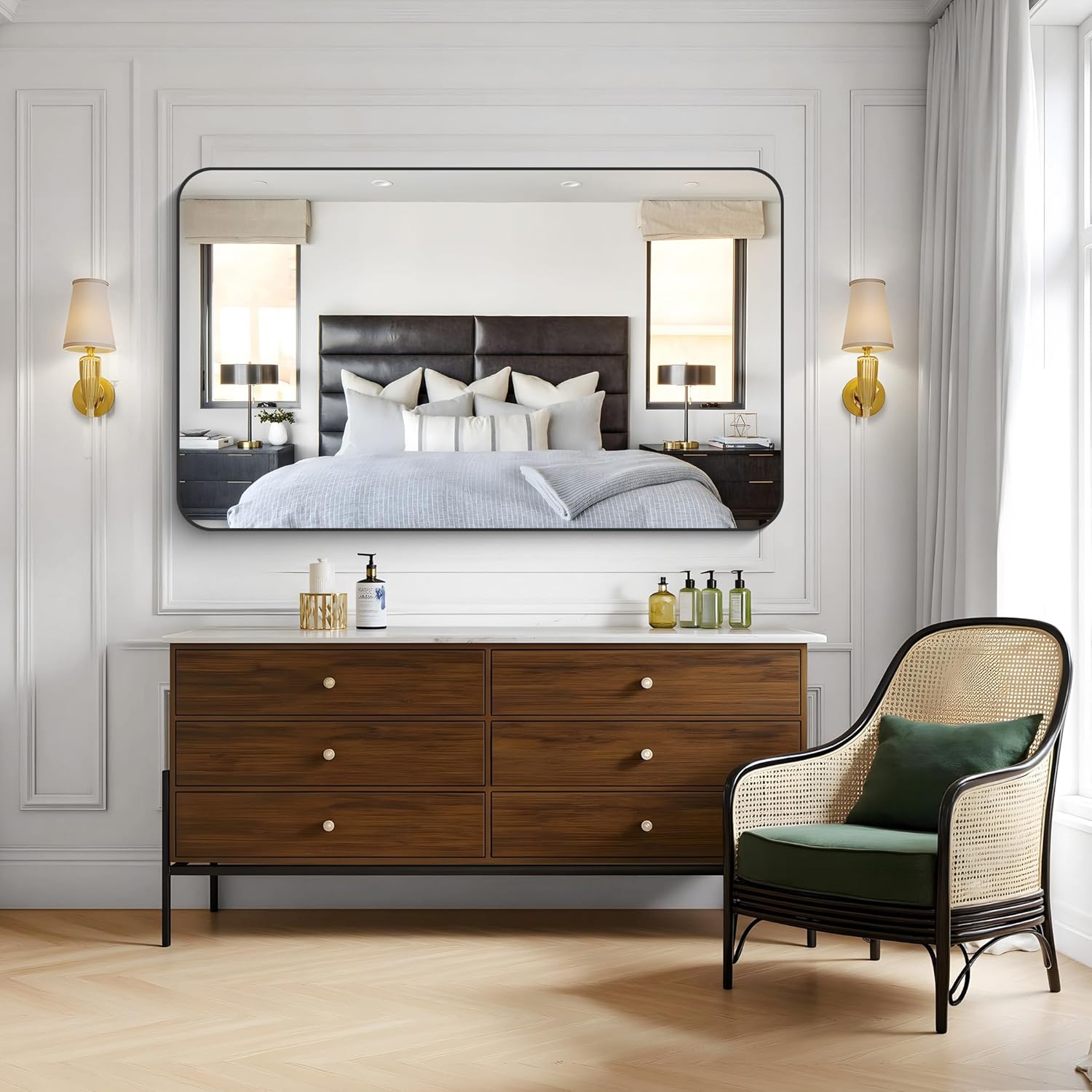 - Eco-Conscious & Damage-Resistant Packaging:Packaged in a 62.20"x37.80"x1.50" box with triple-layer protection (hardened carton, corner protectors, and EPE protectors), our mirrors undergo rigorous transit testing to ensure significantly below-industry damage rates. Fully wrapped edges guarantee safe unboxing.