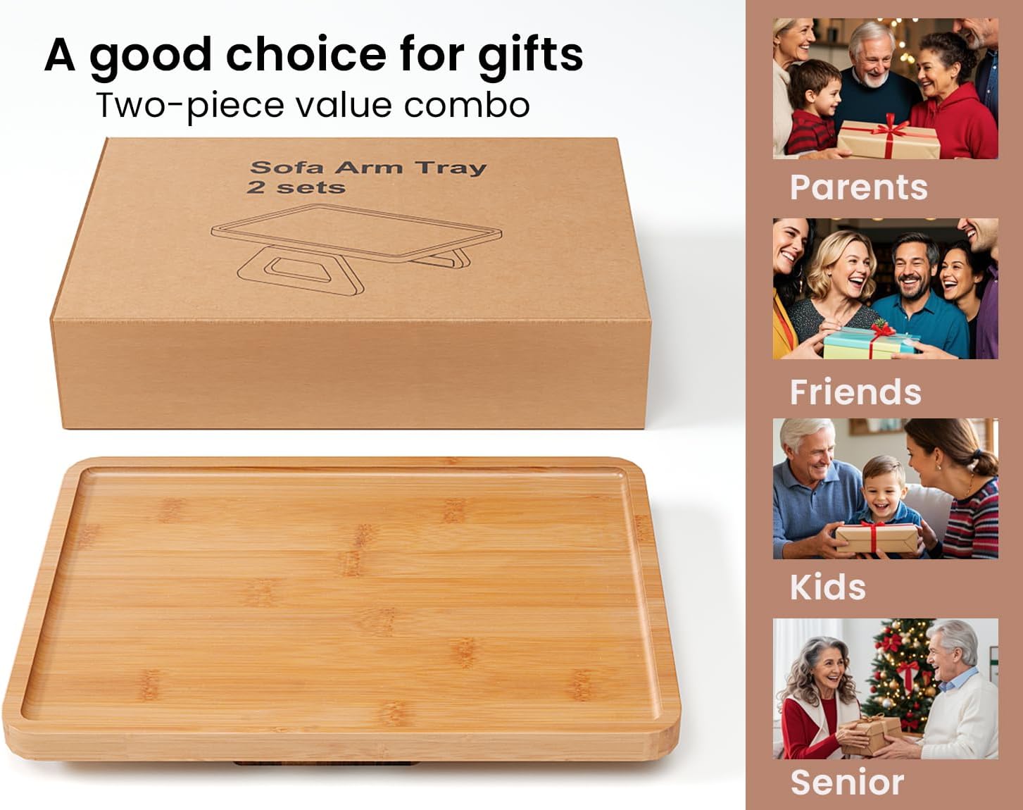 - 【Thoughtful Design,Not Easy to Fall Over】Our sofa tray is equipped with high-density silicone pads on the bottom and high-quality hinges to ensure that it rests securely on any sofa arm without tipping over. Provide you and your family with peace of mind during your leisure time.