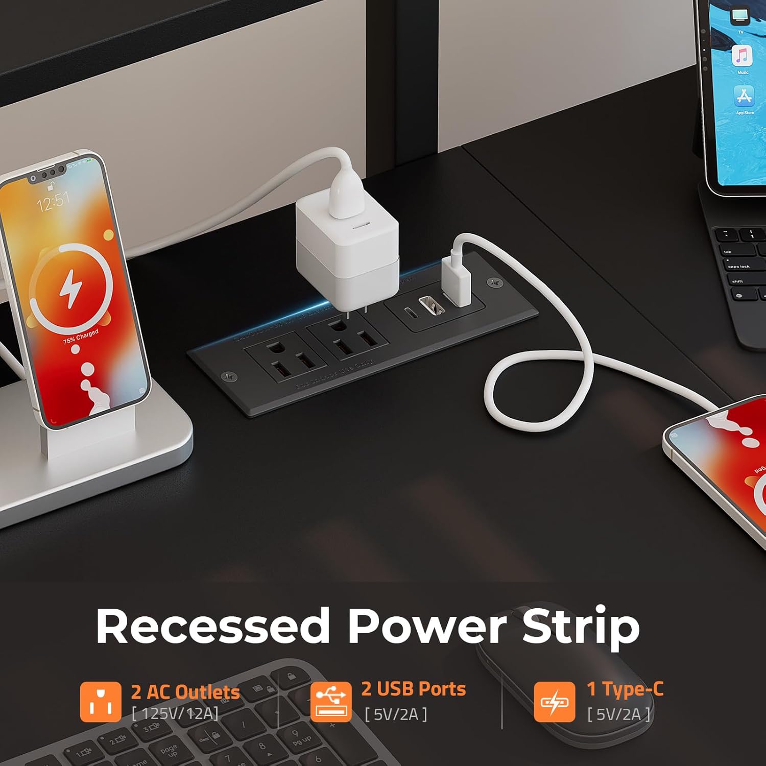 - Built-in Power Outlet: With 2 power outlets, 2 USB ports and 1 Type-C charging port, it can easily charge your electronic devices