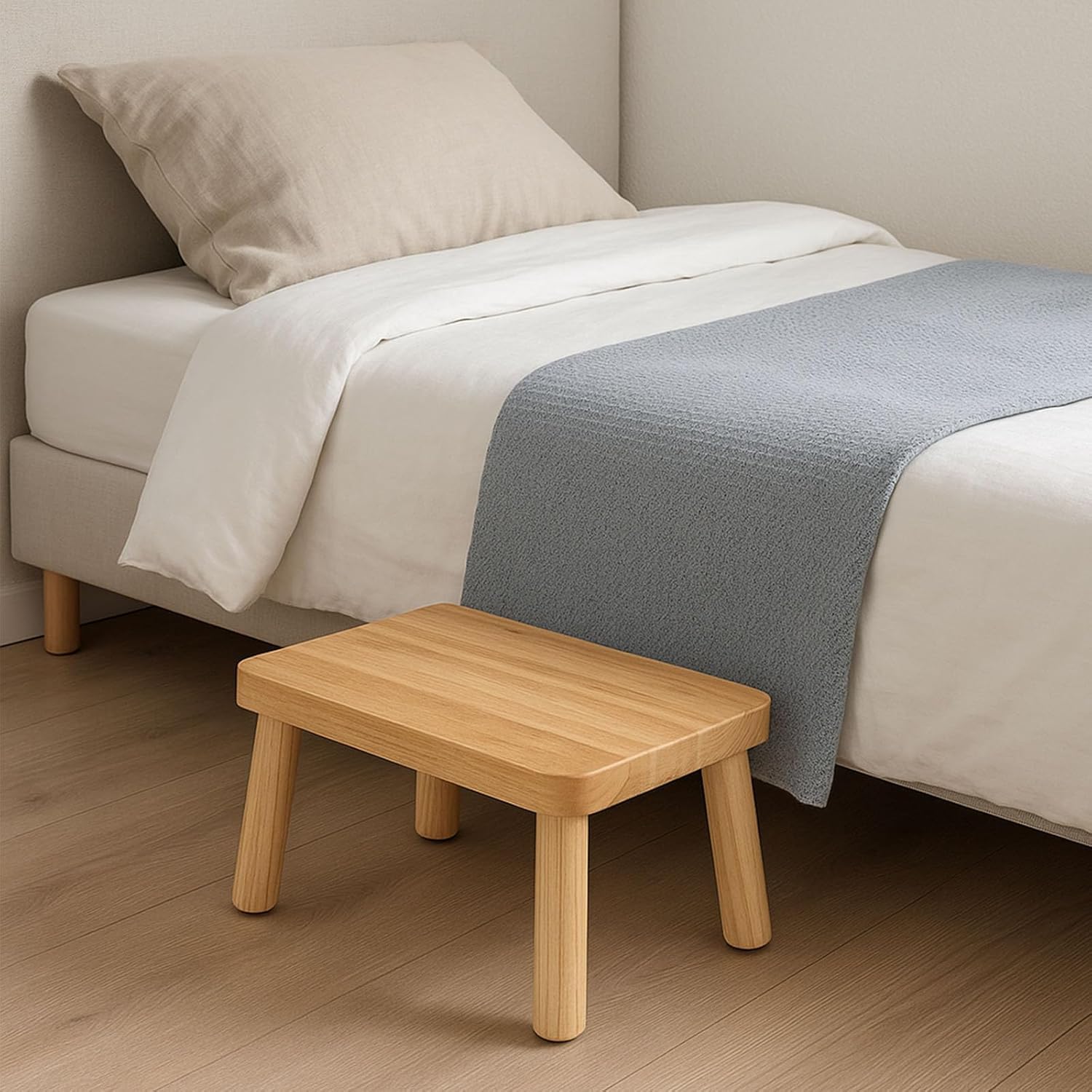 Wooden Step Stool for Adults,One Step Stool with Non-Slip Feet,Portable Bed Steps for High Beds, Office,Bedroom,Kitchen (Natural, Small)