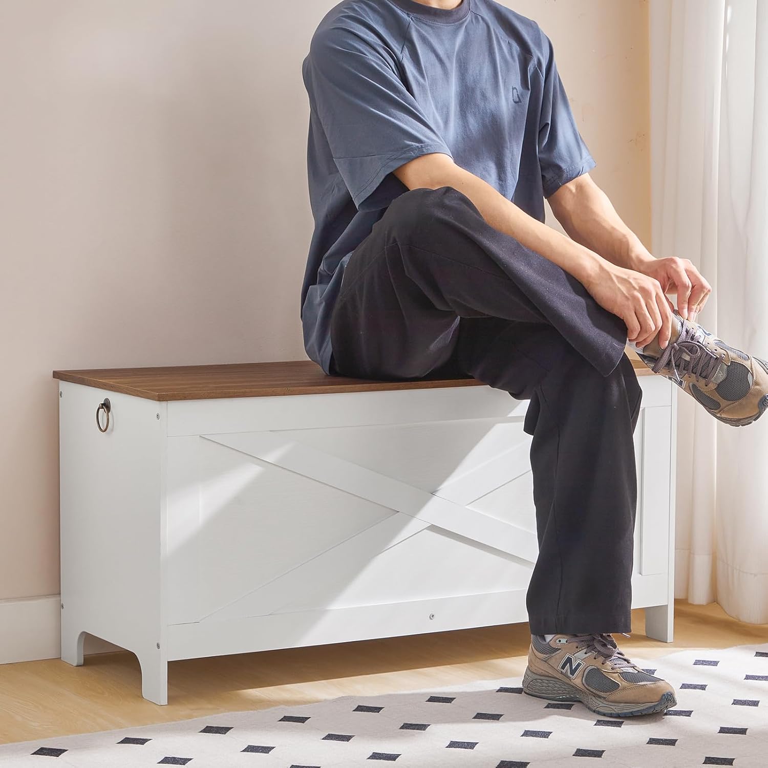 - High-End Aesthetics: The sophisticated barn door design is paired with walnut-color panels for a modern minimalist vibe, making this storage bench suitable for any home decor, adding an international flavor to every living room
