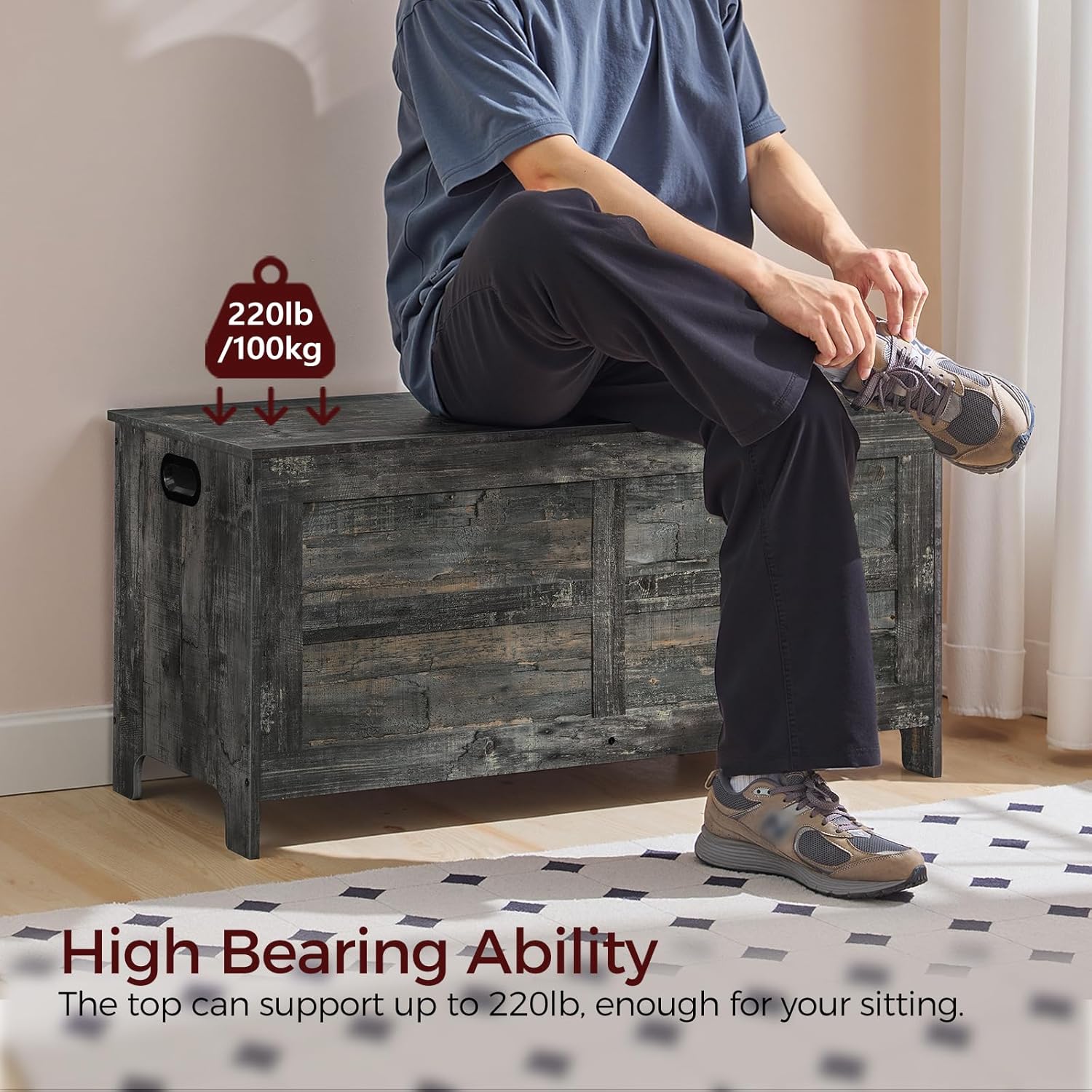 Storage Chest, 39.4” Large Toy Chest, Entryway Storage Trunk, Storage Bench with Safety Hinge, Entrance Bench for Living Room, Entrance, Bedroom, Vintage Gray SCRP48301