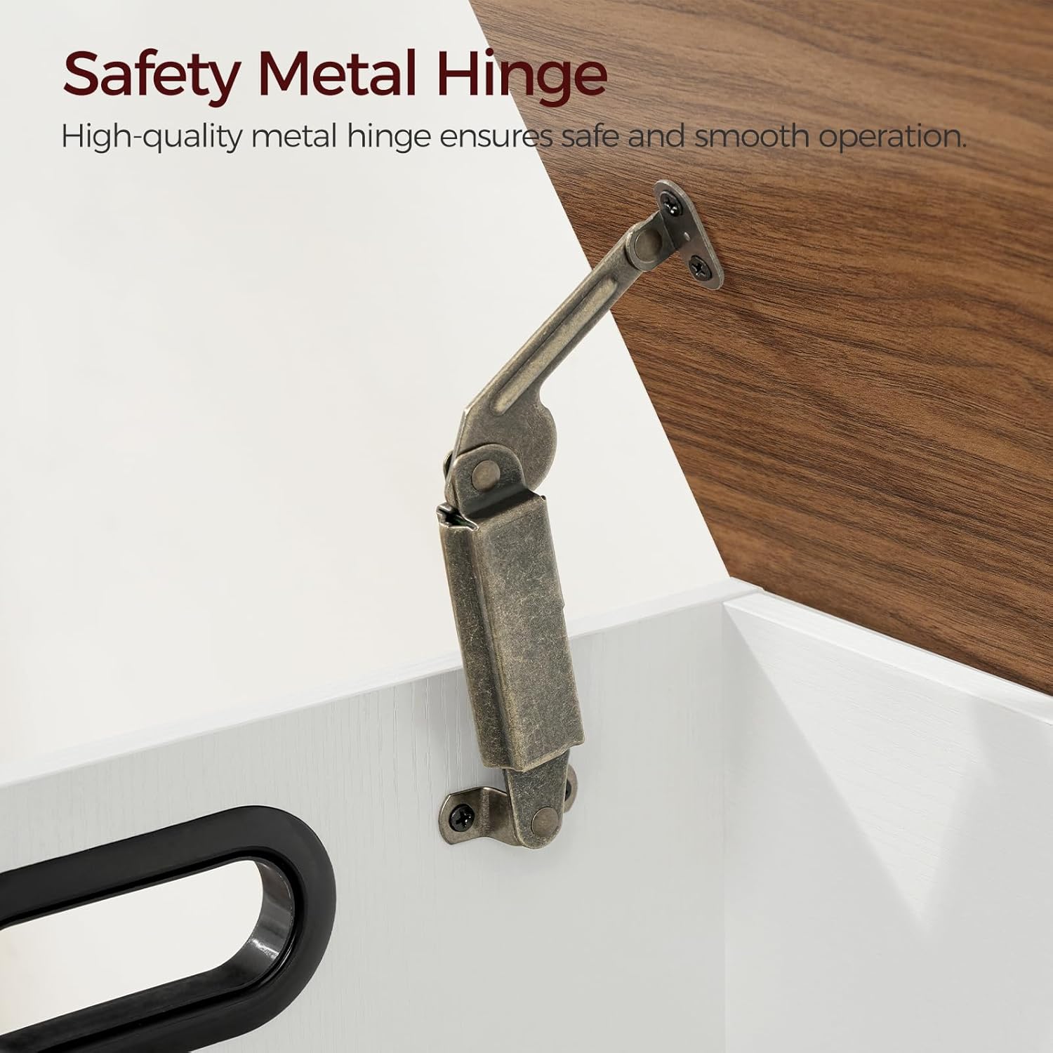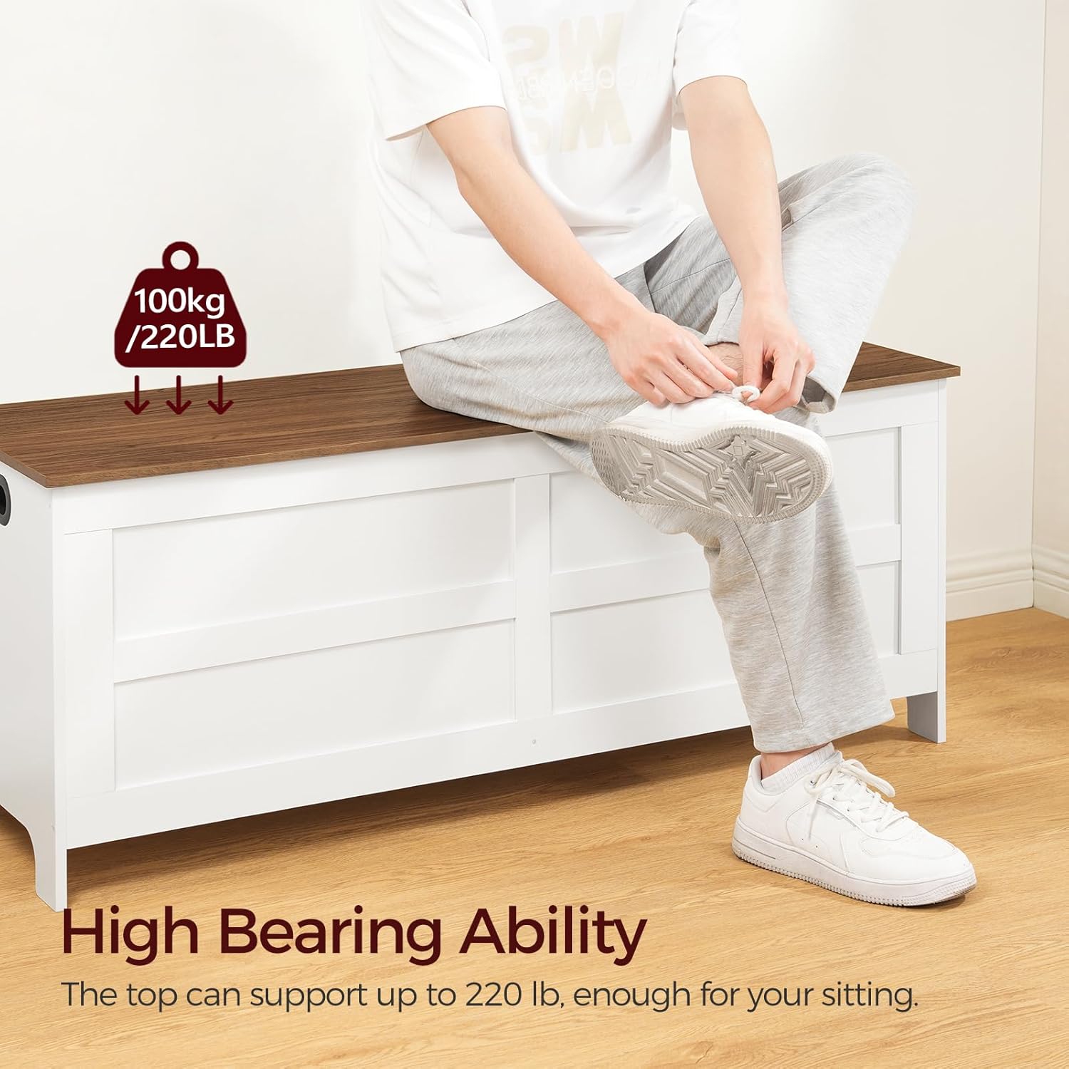 Storage Chest, 47.2” Large Toy Chest, Entryway Storage Trunk, Storage Bench with Safety Hinge, Entrance Bench for Living Room, Entrance, Bedroom, White+Walnut SCBZ48901