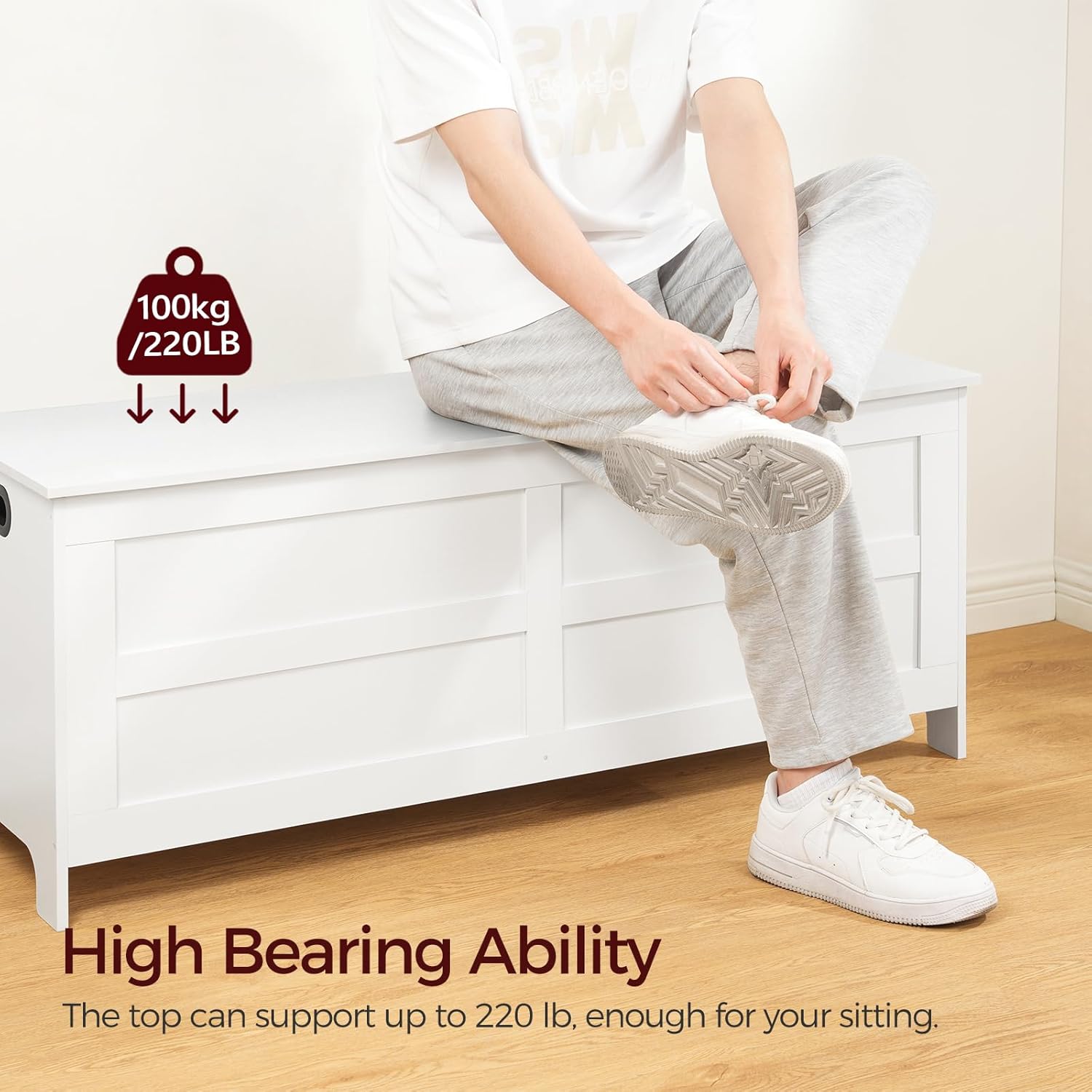 Storage Chest, 47.2” Large Toy Chest, Entryway Storage Trunk, Storage Bench with Safety Hinge, Entrance Bench for Living Room, Entrance, Bedroom, White SCWT48901