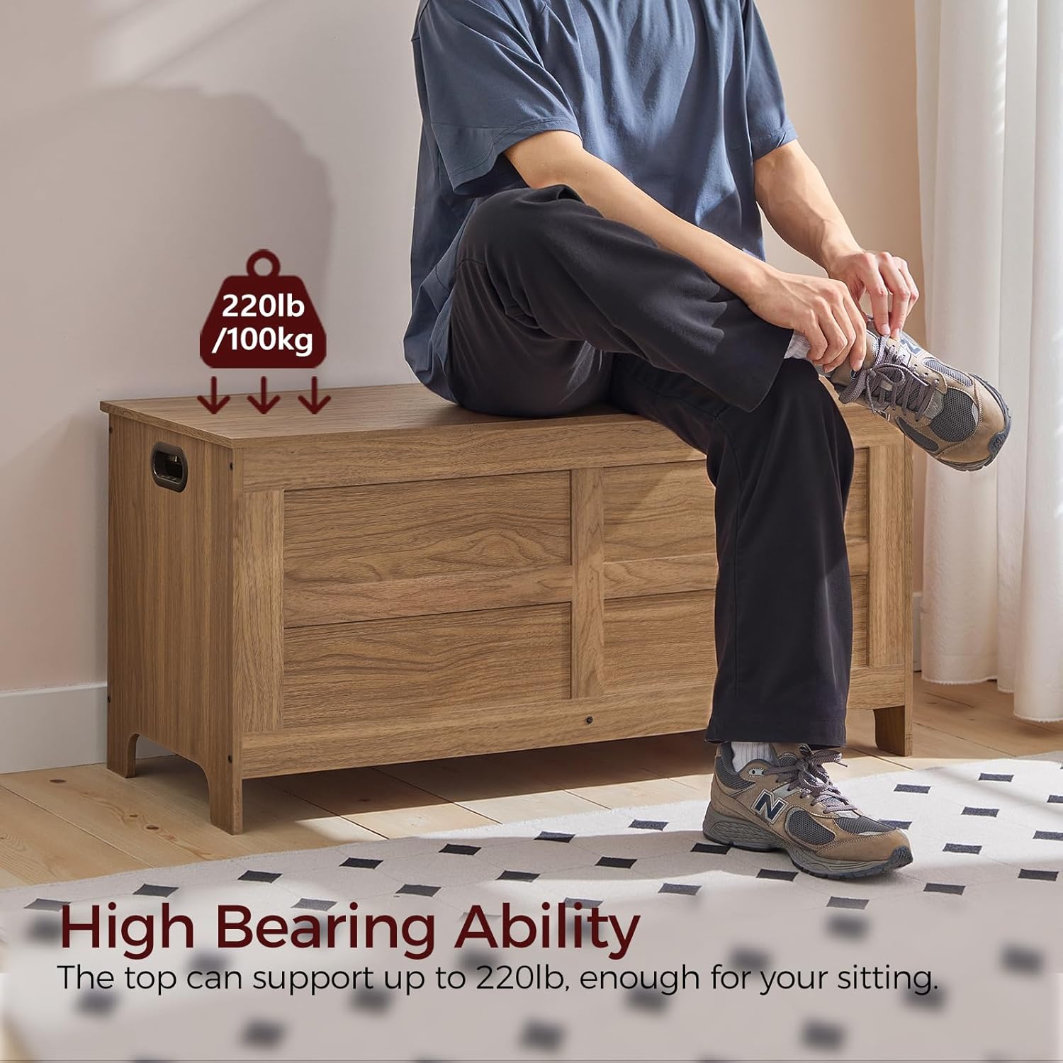 Storage Chest, 39.4” Large Toy Chest, Entryway Storage Trunk, Storage Bench with Safety Hinge, Entrance Bench for Living Room, Entrance, Bedroom, Honey Brown SCOR48301