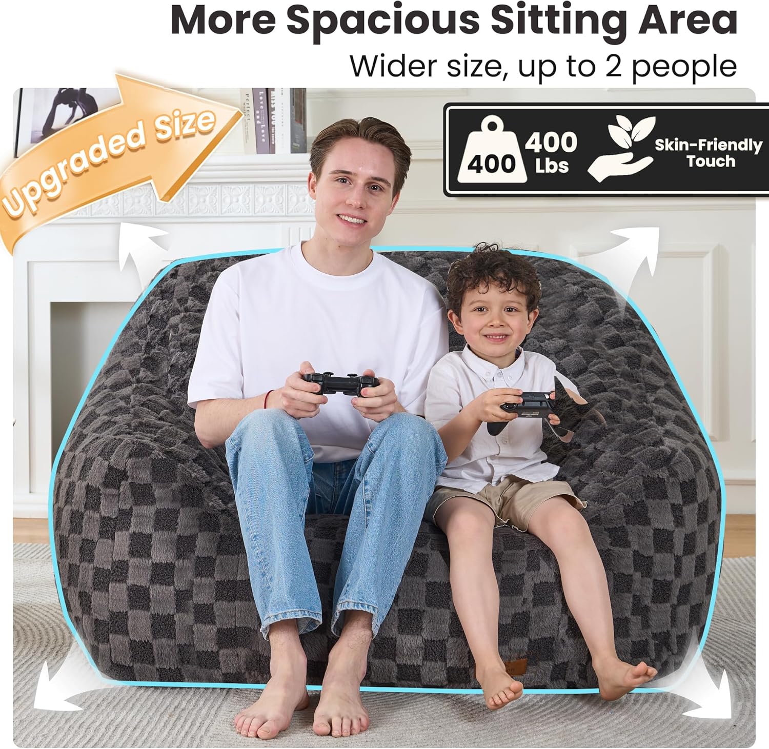 Bean Bag Chairs for Adults, Giant Beanbag Sofa Comfy Reading Chair, Oversized Bean Bag Chairs for Living Room Bedroom, Soft Faux Fur Fabric, 3.2FT, Dark Grey, Checkered