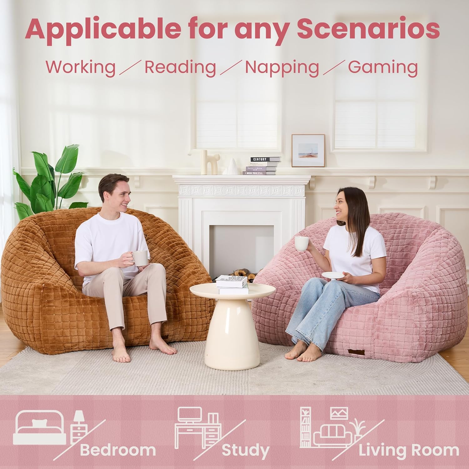 - Durable: Crafted with soft faux fur fabric, this bean bag chair pairs durability with style. Reinforced stitching and puffy filling ensure it withstands daily use, whether as a bean bag chairs for adults in the living room, a bean bag couch for movie nights, or a cozy chair for late-night reading.