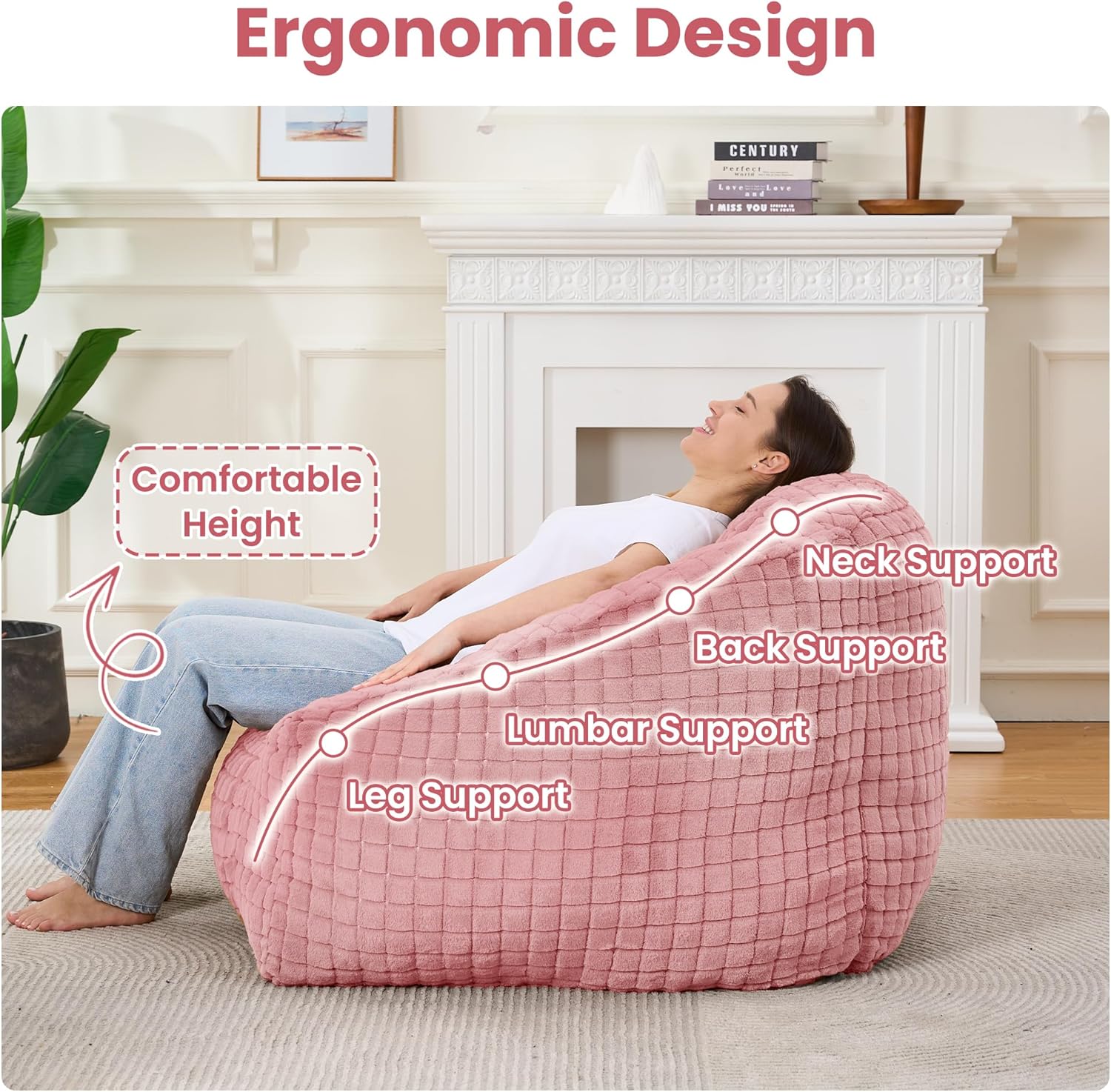 Bean Bag Chairs for Adults, Giant Beanbag Sofa Comfy Reading Chair, Oversized Bean Bag Chairs for Living Room Bedroom, Soft Faux Fur Fabric, 3.2FT, Pink, Checkered