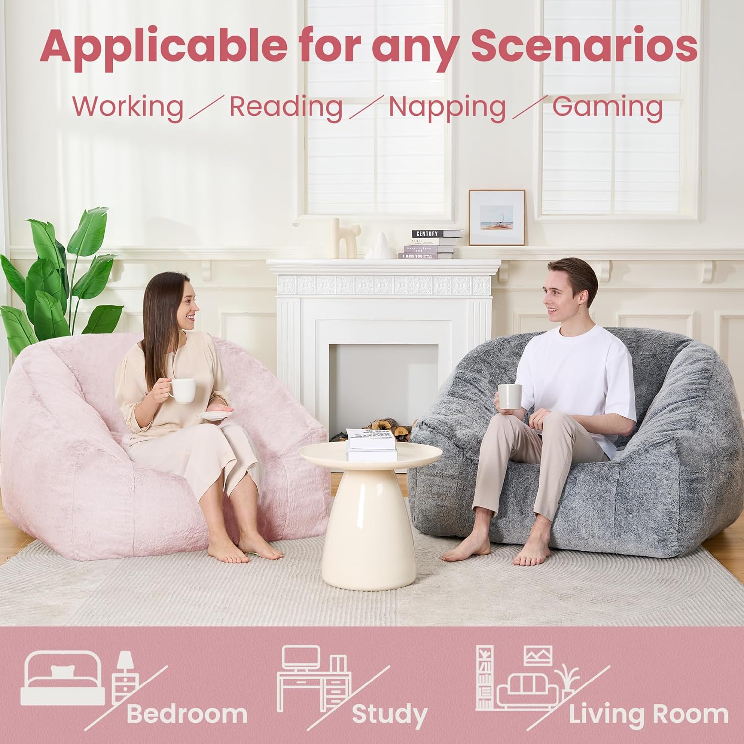 - Durable: Crafted with soft faux fur fabric, this bean bag chair pairs durability with style. Reinforced stitching and puffy filling ensure it withstands daily use, whether as a bean bag chairs for adults in the living room, a bean bag couch for movie nights, or a cozy chair for late-night reading.
