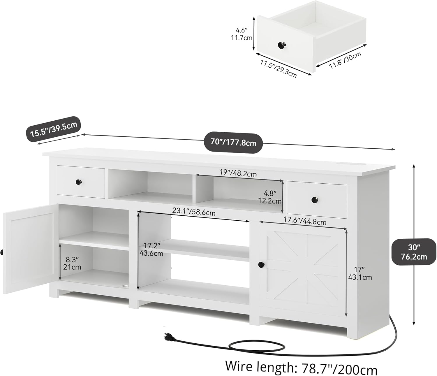- Plenty of Storage Space: The TV stand has 2 storage cabinets and 4 open compartments for a variety of storage needs, and the top drawer is great for storing small items