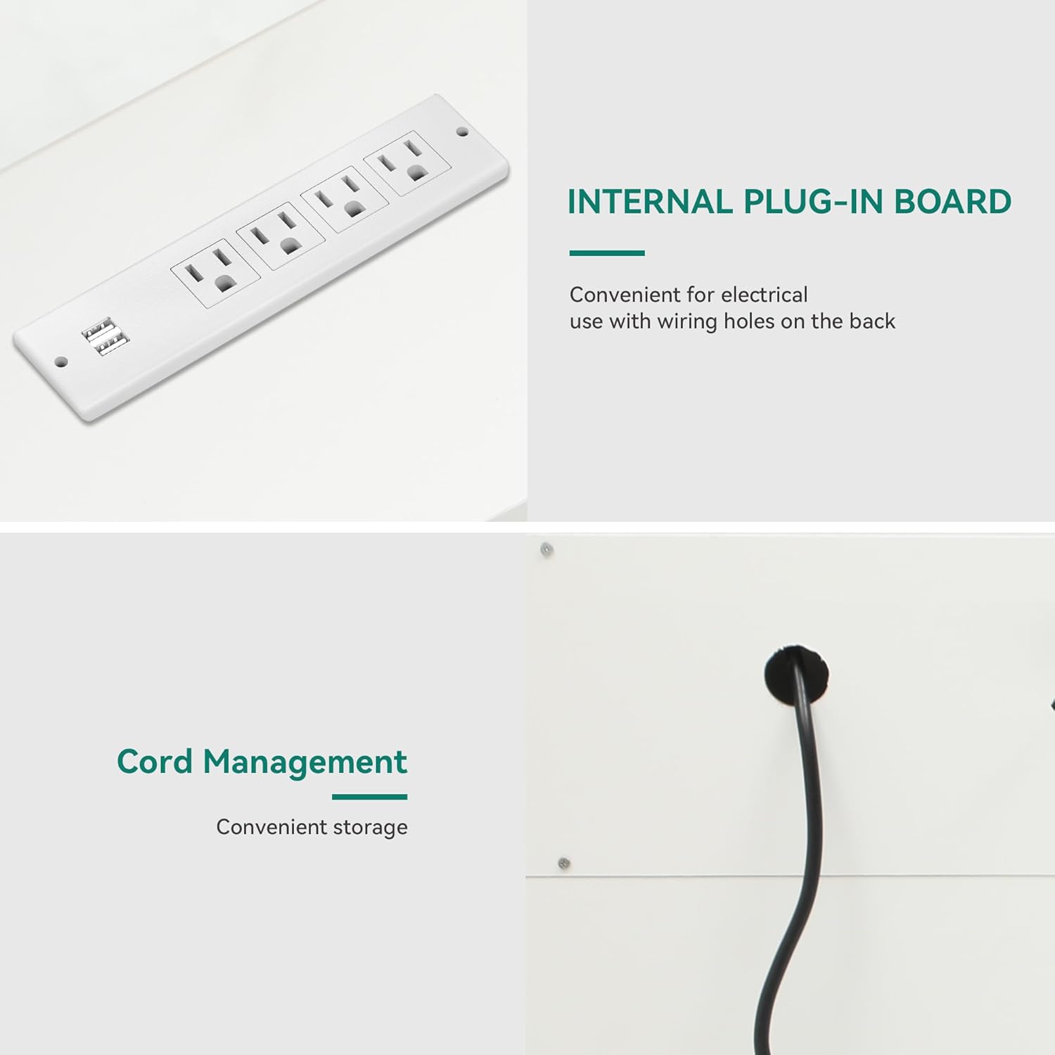 - Built-In Power Outlets: Source outlets and cable holes ensure easy and clean connections. Anti-tip design enhances safety and stability
