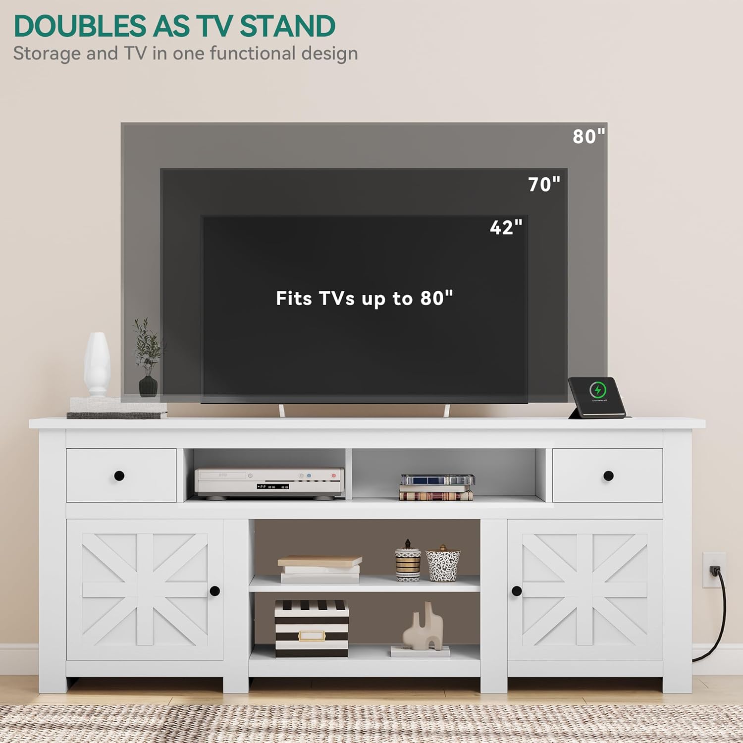 - TV Cabinet: YITAHOME farmhouse TV stand combines fashionable design with practical function, adding two points to the living room, and can accommodate up to 80-inch TVs
