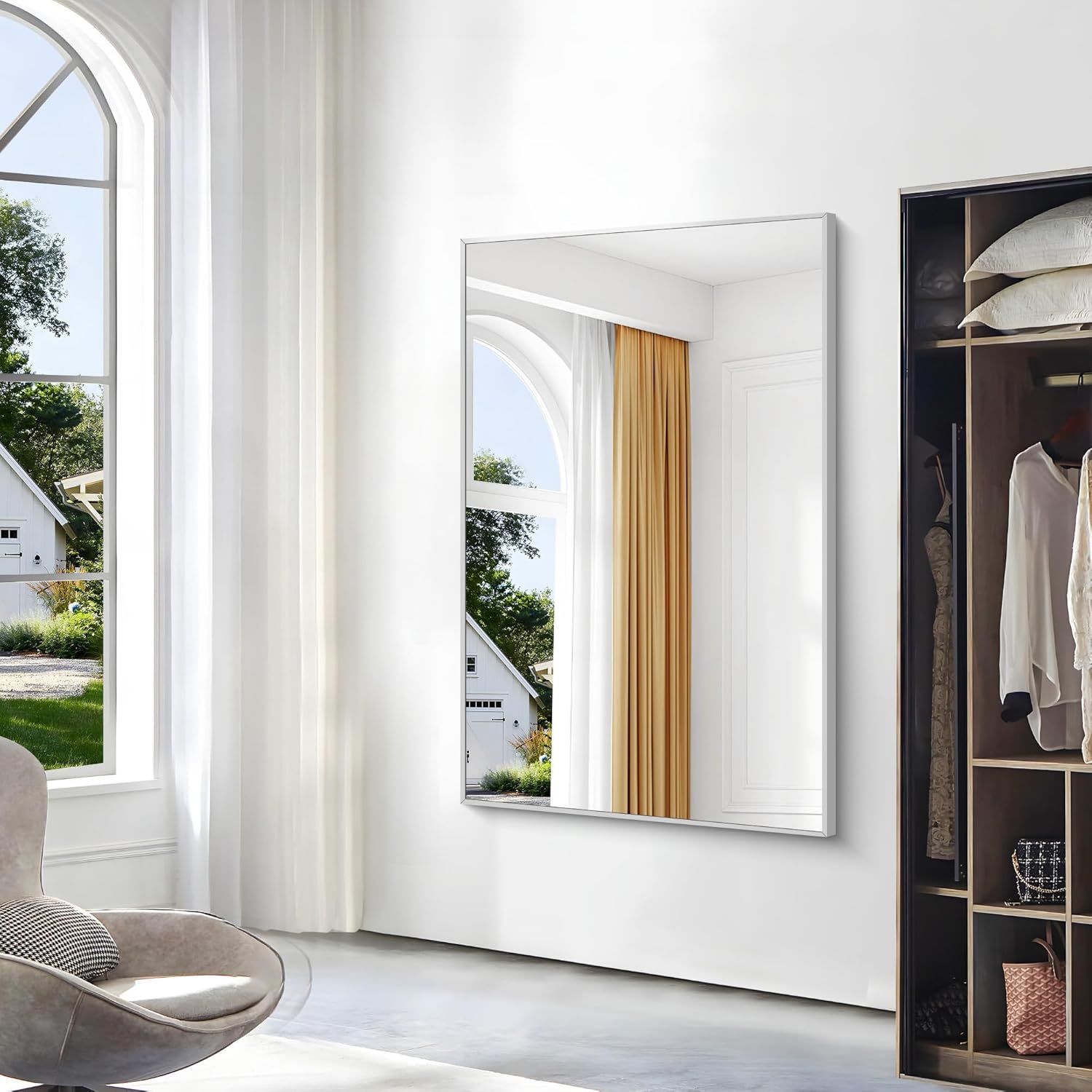 - SILVER FRAME : Unique silver frame seamlessly blends into any modern home decor,adding a touch of fashion and elegance to the room. The silver coating on the frame enhances light reflection, making your space brighter and more spacious