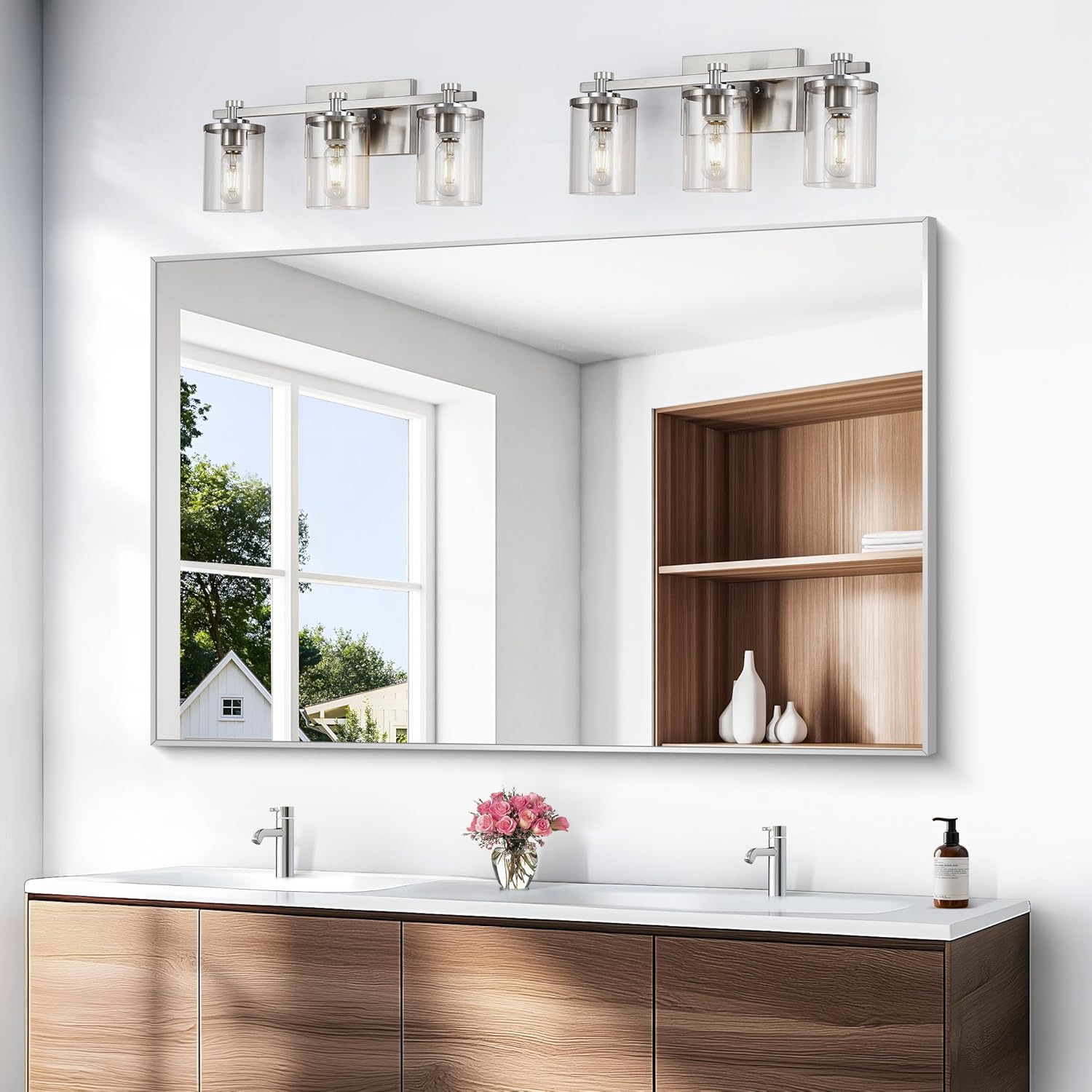 - CLEAR REFLECTION & NO DISTORTION : Silver bathroom mirrors for wall utilizes a four-layer floating technology to provide a high-definition reflection, presenting a clear visual effect without any distortion or bloating.