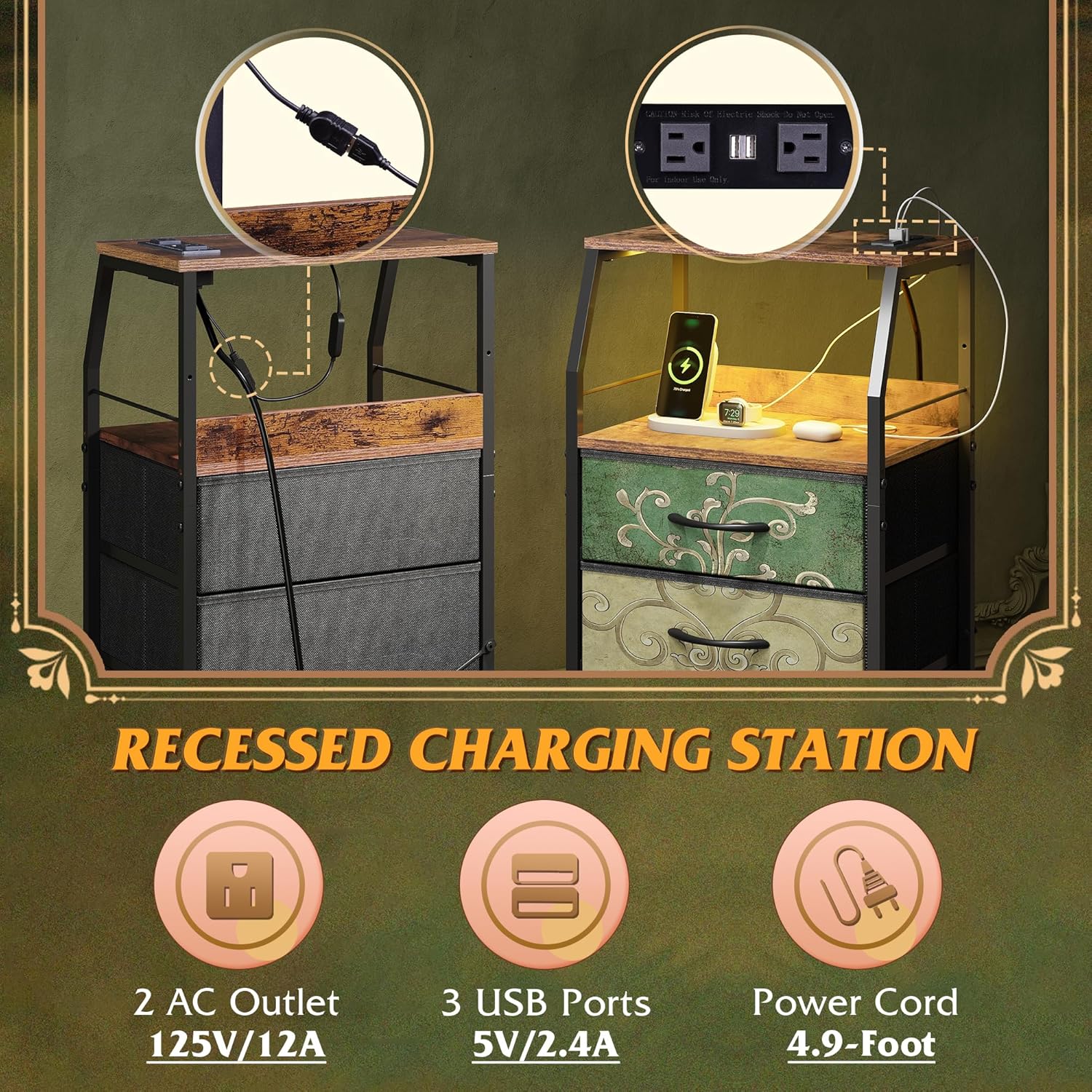 - [Night Stand with Charger Station]: The layout of the built-in power sockets is more convenient and user-friendly. It features a combination of 2 USB ports and 2 AC outlets to meet various charging needs. The charging station is ETL certified, so you don't need to worry about safety issues.