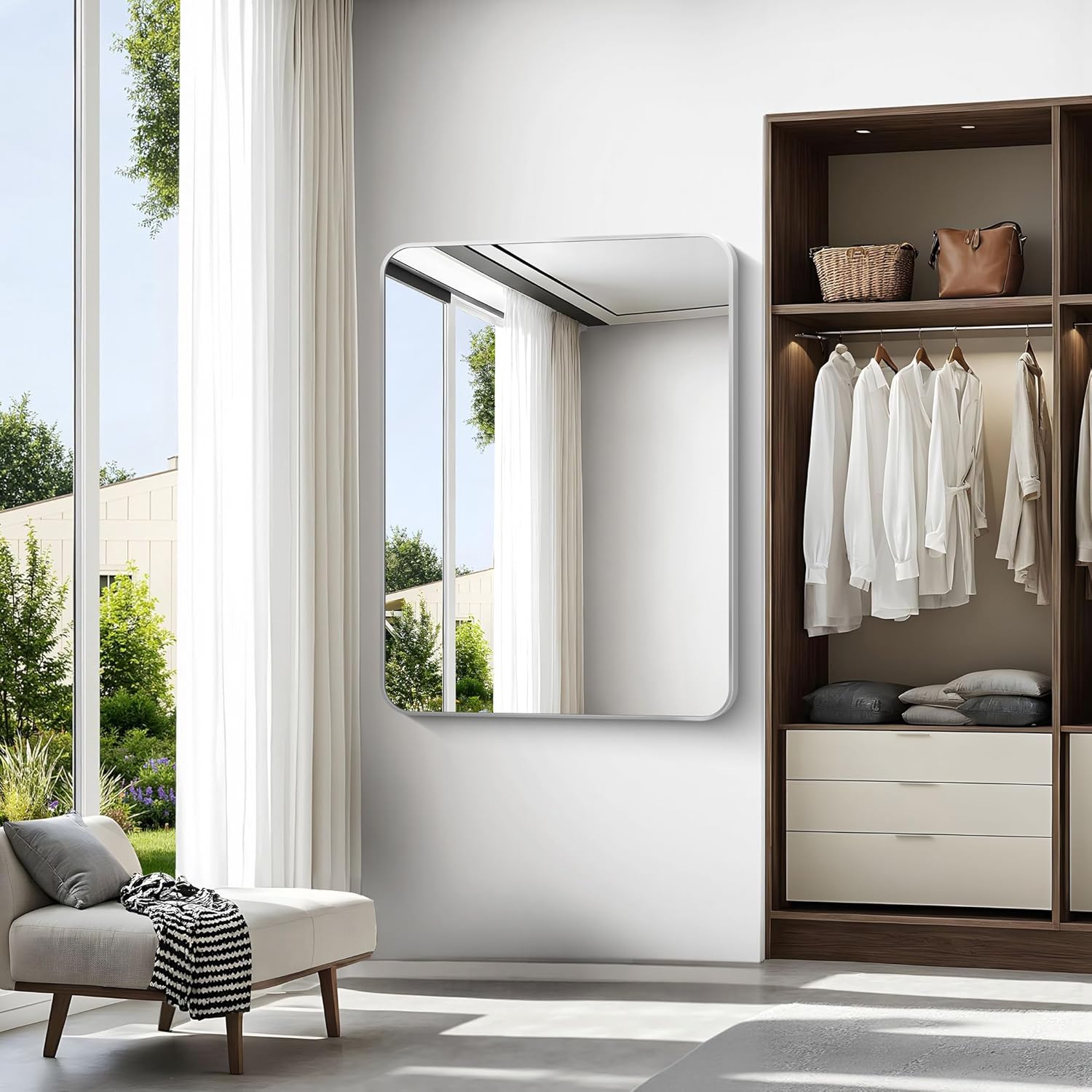 - ROUNDED CORNER DESIGN :The 36x48 inches mirror features an elegant rounded corner design and measures 36" x 48" Its unique shape adds a touch of sophistication and upscale beauty to your home.
