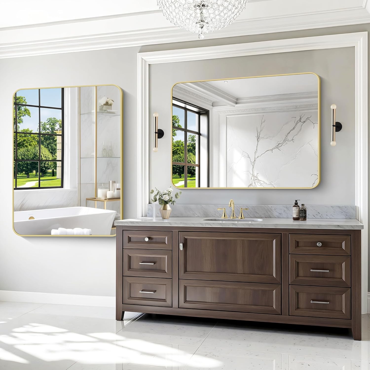 - HIGH DEFINITION :36x48 gold bathroom mirrors utilizes a four-layer floating technology to provide a high-definition reflection, presenting a clear visual effect without any distortion or bloating