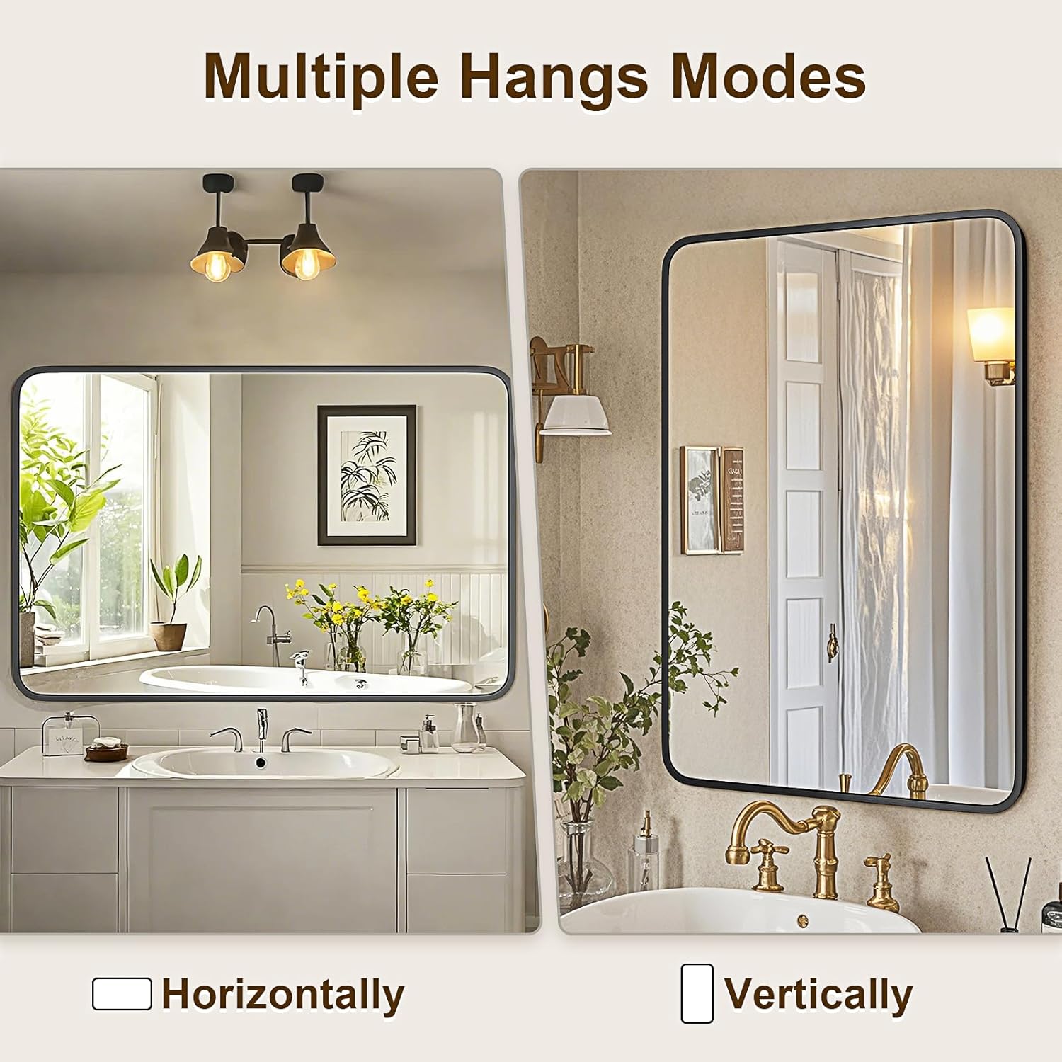 - ✅【Easy, Hassle-Free Installation】 No need to hire a handyman—this large bathroom mirror for wall is designed for simple mounting. All necessary hardware is included, and it can be hung vertically or horizontally to suit your space and style.