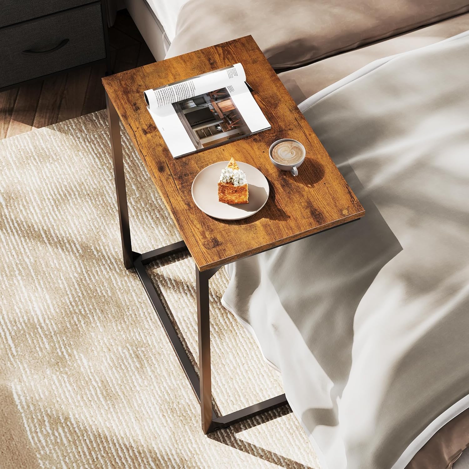 WLIVE C-Shaped End Table, Small Side Tables for Sofa, Wide Couch Table That Slide Under, Laptop Snack Table for Living Room, Bedroom, Home Office, Rustic Brown