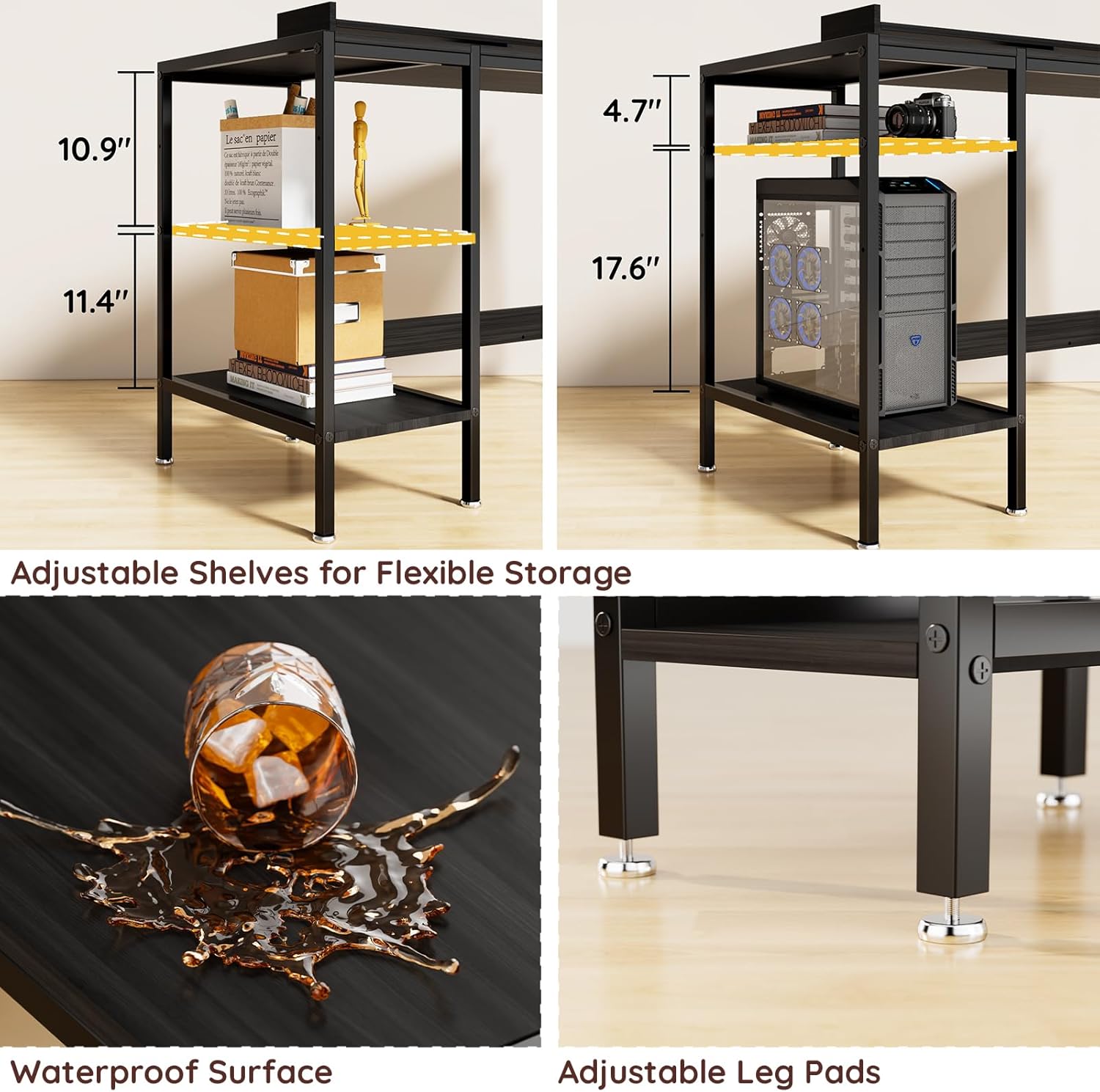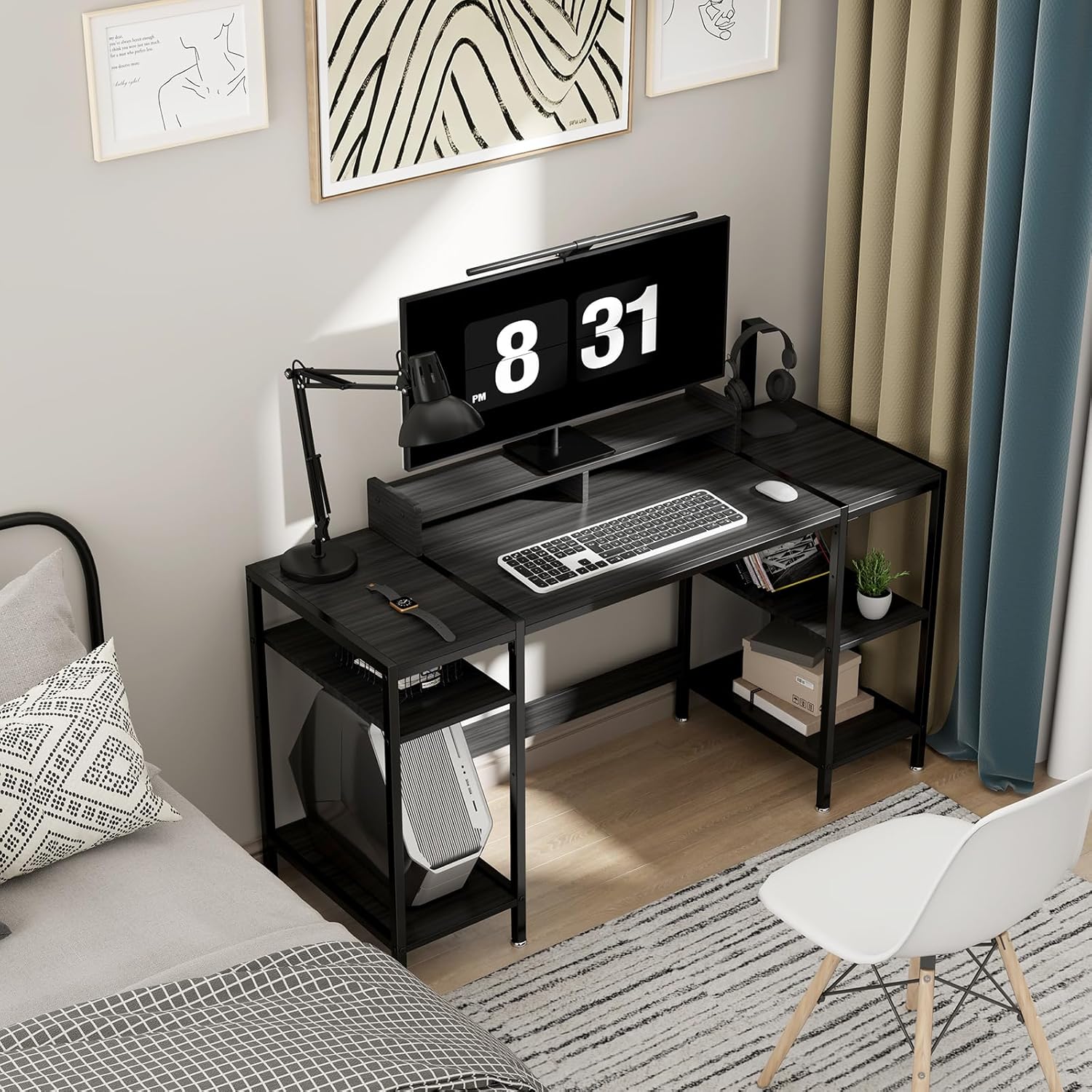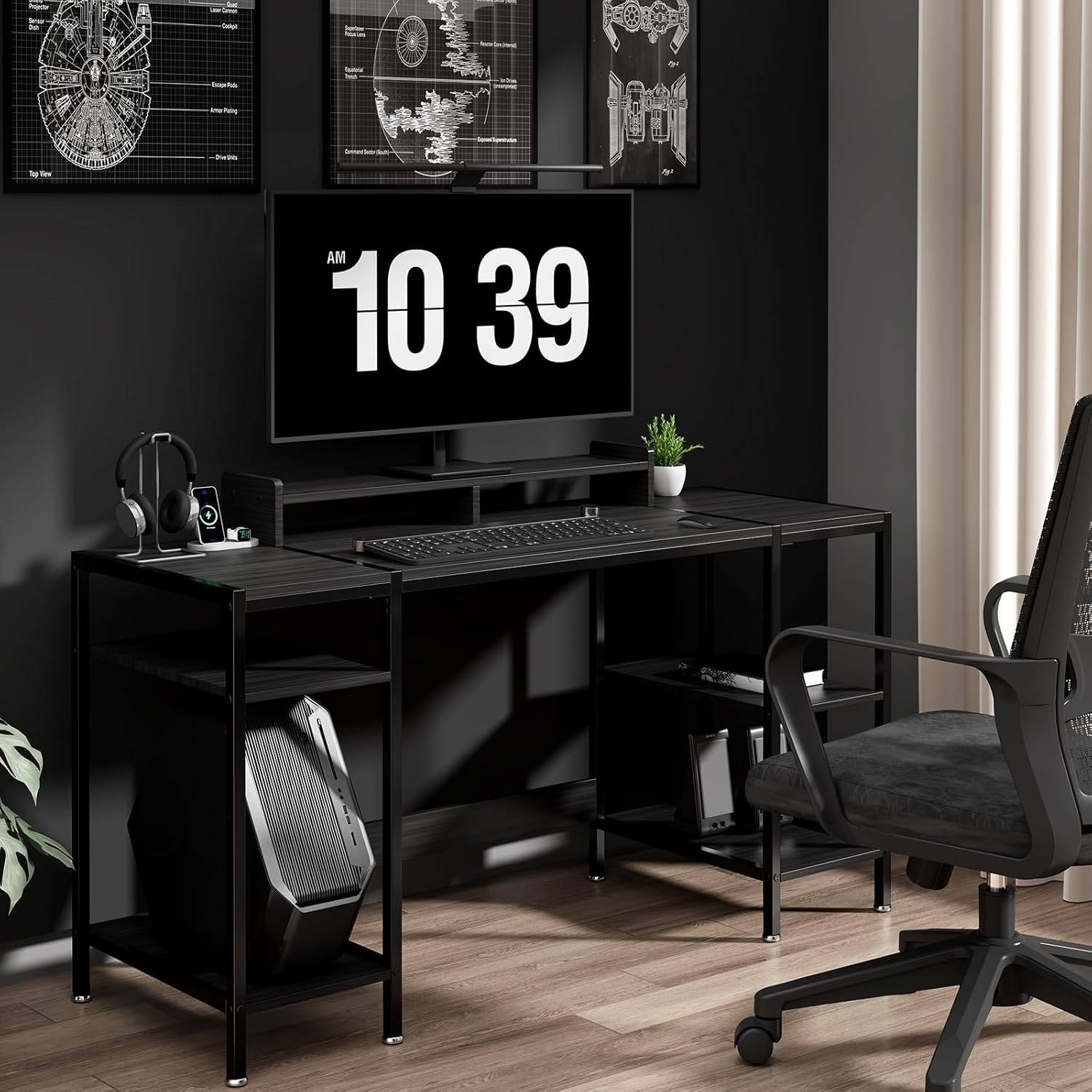 Computer Desk Gaming Desk with Monitor Stand, Home Office Desk Suitable for 2 Monitors, Writing Desk with Adjustable Storage Space,Sturdy and Durable Modern Small Desk (Black, 55 inchs)