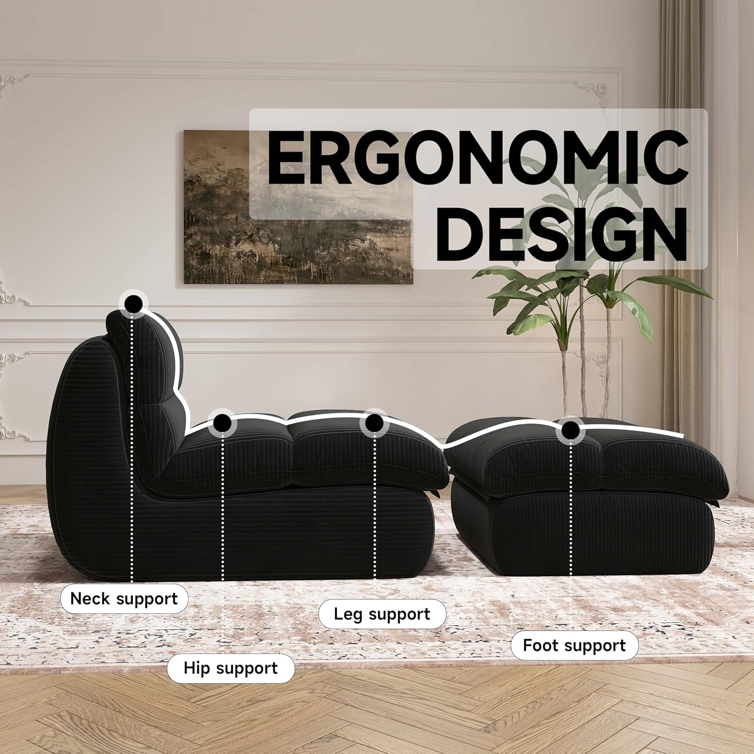 - 【Ergonomic Design】-The ergonomic shape of the cozy reading chair is engineered to provide excellent support to your neck, back, hips, legs, and feet. Its height of 16.5 inches ensures you won’t feel too low to the ground, providing a comfortable sitting posture. The anti-slip base keeps the chair in place, ensuring stability and preventing any unwanted shifting or sliding while you relax or read.