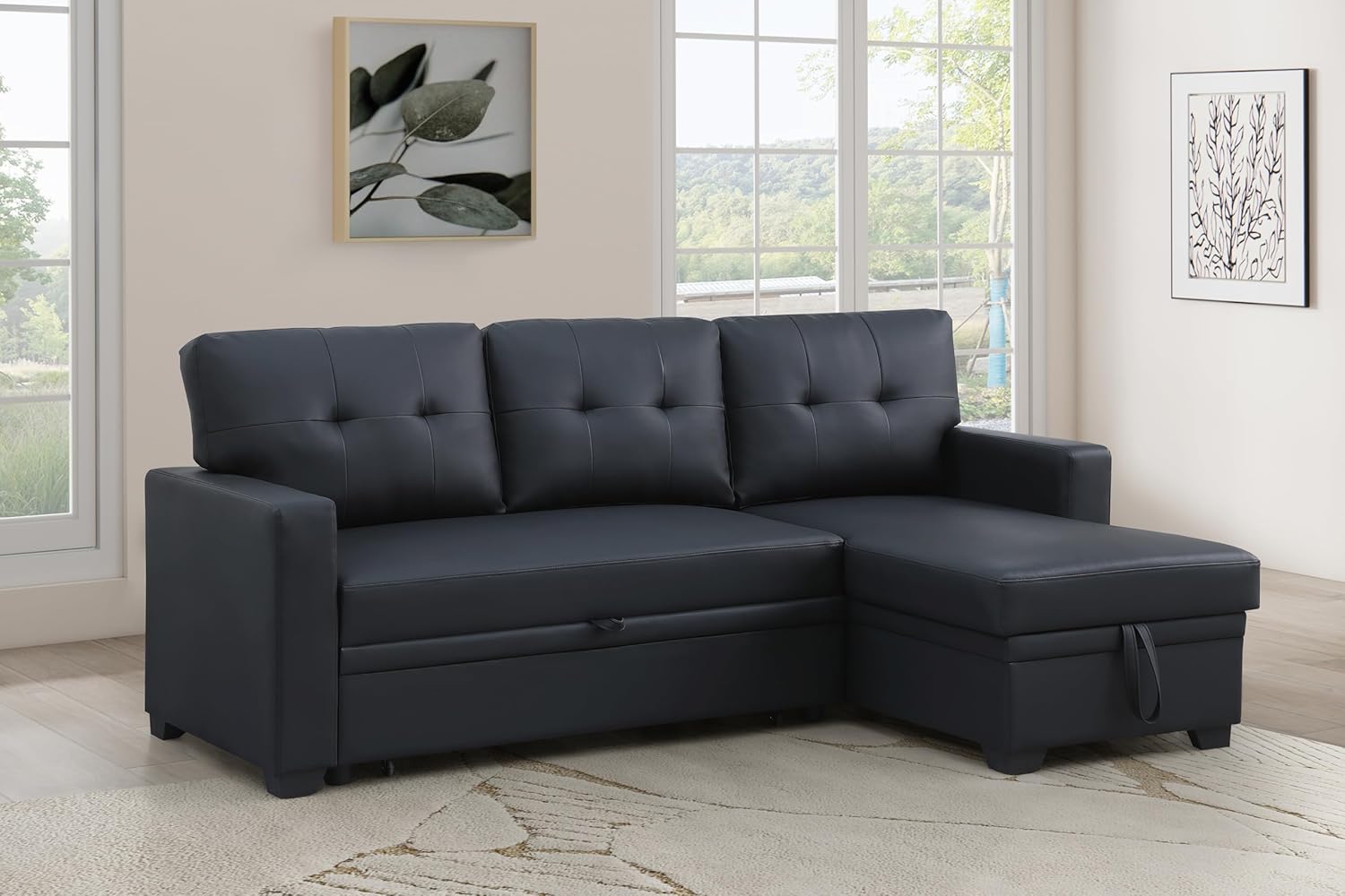 - 【Reversible Chaise Sectional Sofa】The chaise longue can be installed on the left or right side of the sectional sofa bed according to the space arrangement of your living room or your preference.
