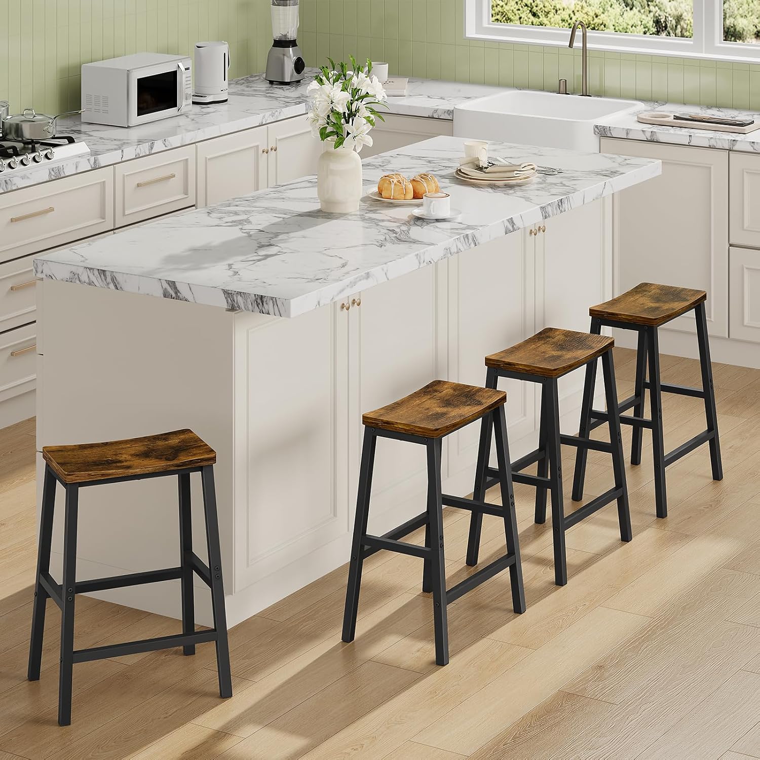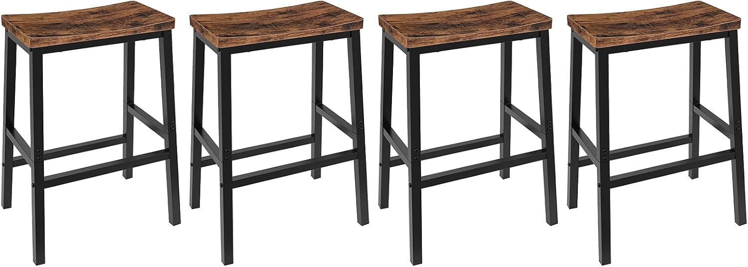 HOOBRO Bar Stools Set of 4, Counter Height Bar Stools, 23.6'' Bar Chairs, Saddle Stools with Footrests, Industrial Barstools for Dining Room, Kitchen, Bar, Rustic Brown and Black BF02MDP401
