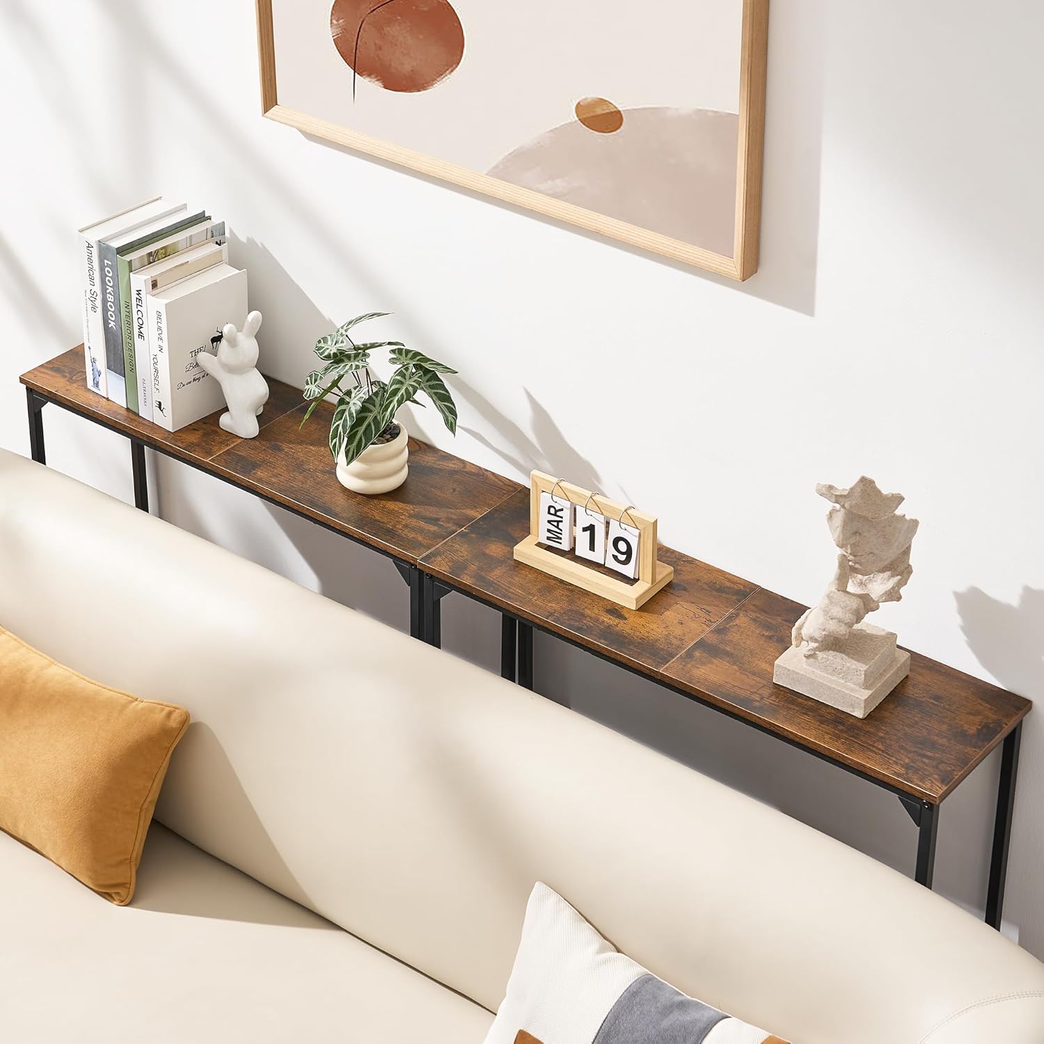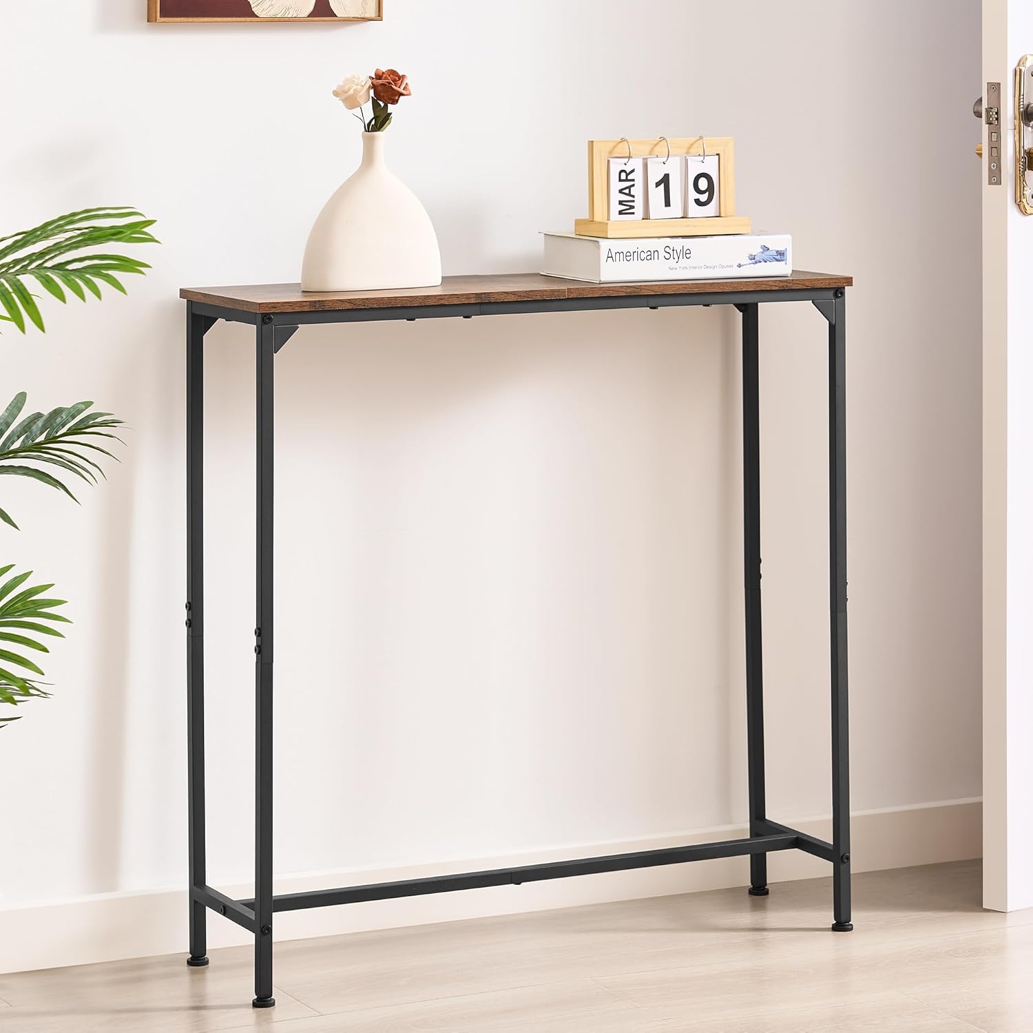- [Versatile Console Table] This multi-purpose console table doubles as a slim sofa companion, entryway command center, compact kitchen snack station, home office supply hub, or balcony greenery display. Effortlessly organize daily essentials while showcasing decorative accents, favorite reads, or potted plants — all while maintaining a sleek, clutter-free aesthetic