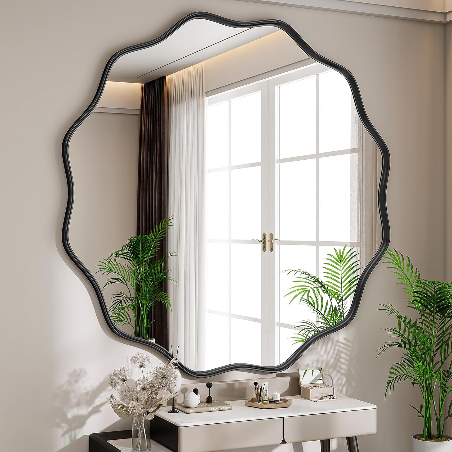 - Multiple Scenario Applicable: Round wave frame mirror with modern decorative, can be used in many scenarios, suitable for bathroom upgrades, vanity, bedroom, living room, dining room, entryway, fireplace, and so on