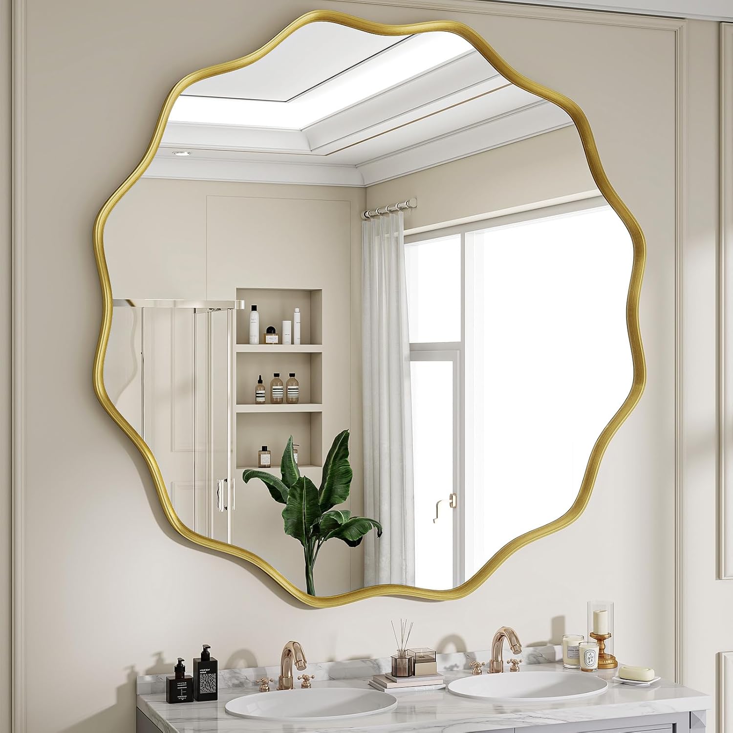 - Multiple Scenario Applicable: Round wave frame mirror with modern decorative, can be used in many scenarios, suitable for bathroom upgrades, vanity, bedroom, living room, dining room, entryway, fireplace, and so on