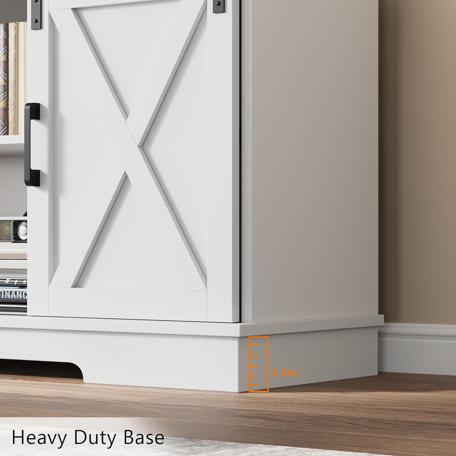 - Sliding Barn Doors: Two sliding doors can slide on metal rails to hide the storage cabinet or the central shelf, even if the inside of your TV stand is messy, it can be easily hidden