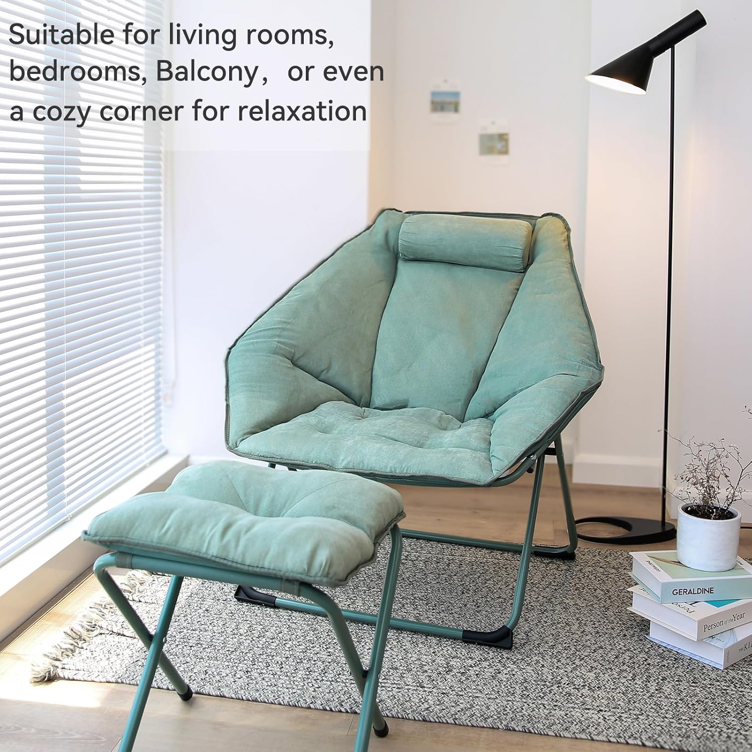 Hexagon Foldable Living Room Chair, Saucer Chair for Adults, Comfy Bedroom Lounge Chair, Moon Chair, Lazy Folding Chair for Dorm Rooms(Ottoman-Green)