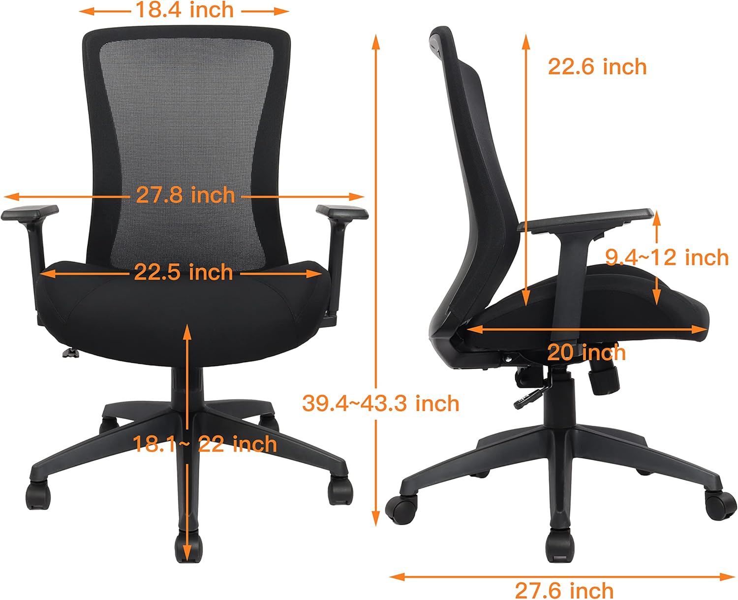 - 【 ERGONOMIC FEATURES】 The comfortable mesh office chair features a gas lift for height adjustment and a tilt-tension mechanism for custom seat tilt. Its 2D adjustable armrests support your arms and reduce shoulder strain. The ergonomic mid-back design provides optimal lumbar and cervical spine support.