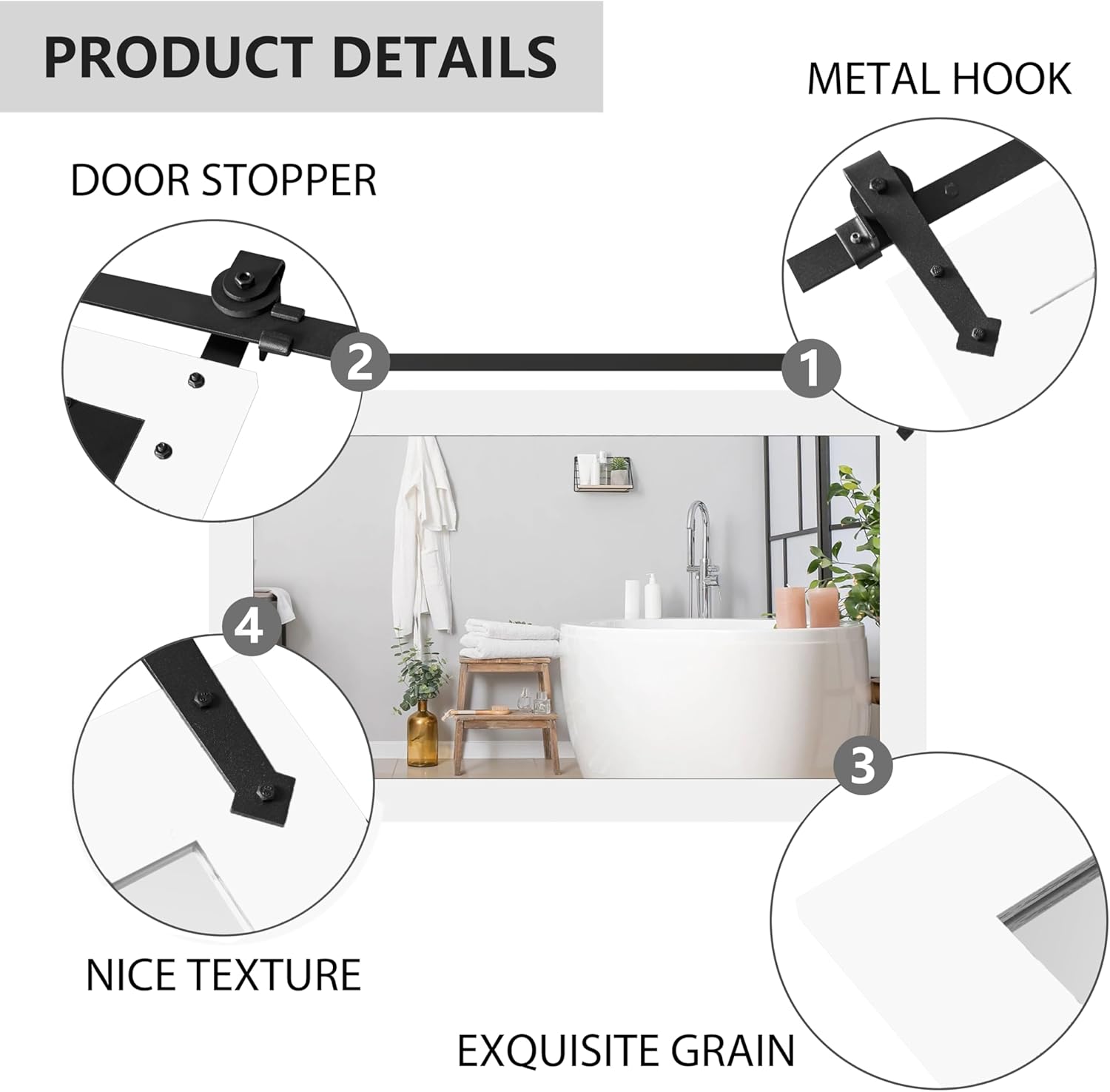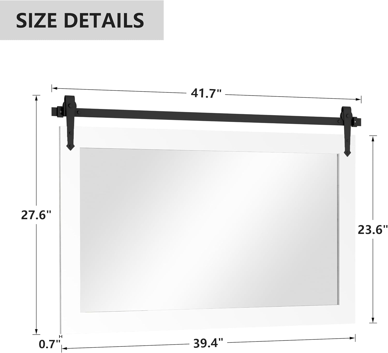 Farmhouse Barn Door Mirror - 42" x 28" Rustic Wood Framed Wall Mirror for Bathroom, Living Room, Bedroom Wall Decor (Bright White)