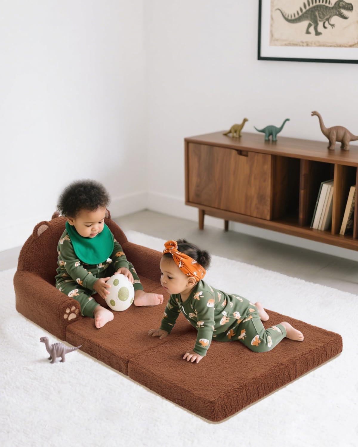 - TEDDY BEAR STYLE: Designed with a brown bear face and curved armrests that provide a familiar and playful look; encourages toddlers to sit independently while adding a child-friendly touch to bedrooms or play areas