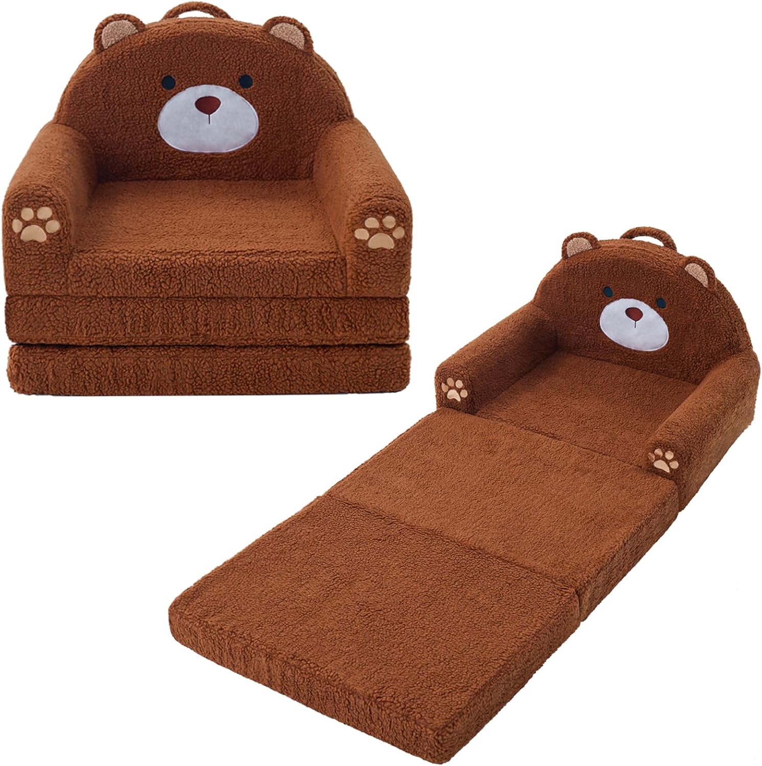 MOONBEEKI 2-in-1 Foldable Toddler Couch, Soft Sherpa Fabric with Washable Cover, Convertible Sofa to Lounger, Kids Sofa for Playroom, Bedroom, Living Room, Birthday Gift, Ages 3-6, Bear, Large