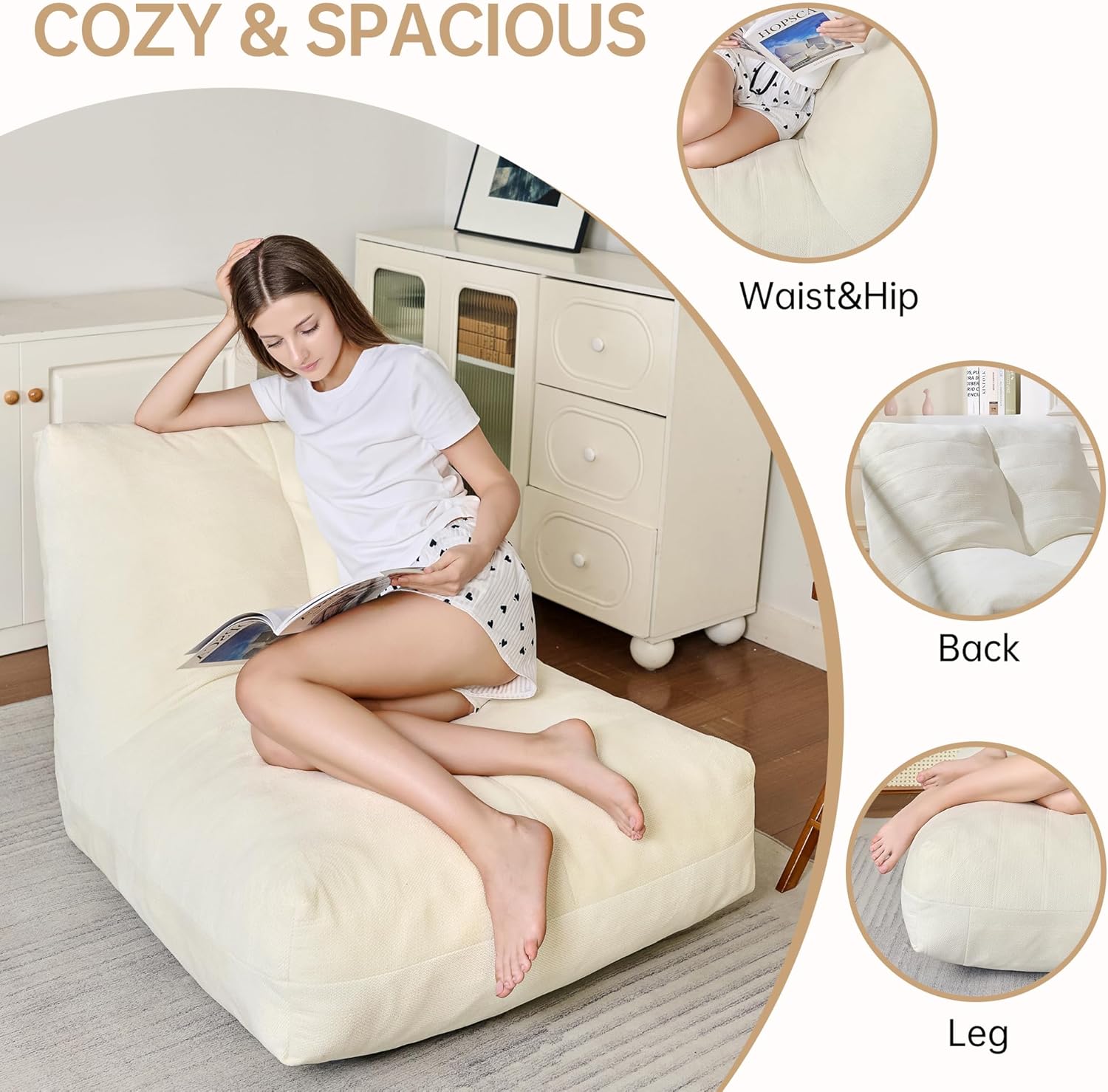 Bean Bag Chairs for Adults, Memory Foam Bean Bag Chair, Spacious Single Sofa, Ergonomic Support Reading Floor Sofa Chair with Filler, Comfy Cozy Beanbag Couch for Bedroom Living Room (Beige)