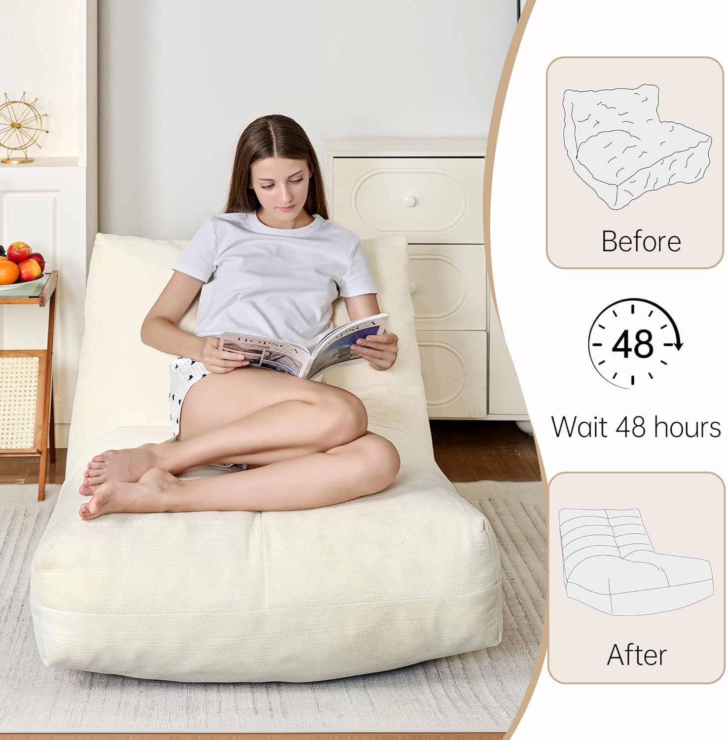 - 【HIGH ELASTIC SPONGE】 Reading chairs for adults is filled with high quality crushed sponge blocks, elastic and moderate hardness. The floor sofa can support the body well, but also ensure a stable sitting feeling, rest assured that the backrest will not collapse.(Compressed shipping, takes 48 hours to recover after unpacking)