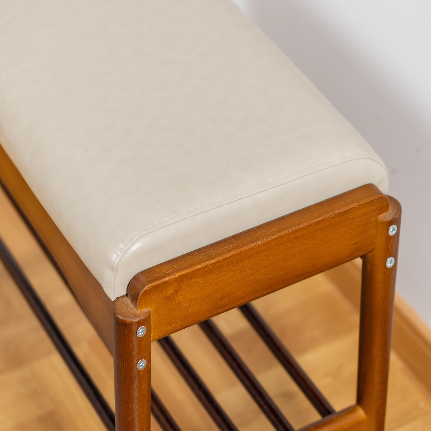 latifolia Small Shoe Bench, Solid Wood Bench with Cushion, 2 Tier Shoe Storage Organizer for Entryway(Walnut,23.62''L)
