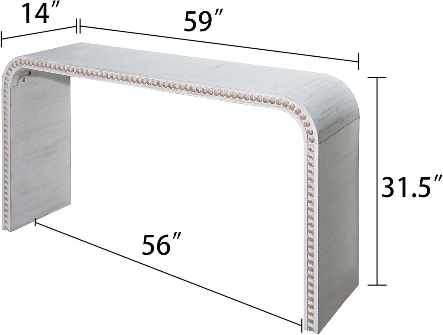 KEIKI Wood Console Table Behind Couch & Sofa, Retro Style with Curved Waterfall & Wood Beads Design, for Entryway, Living Room, Antique White