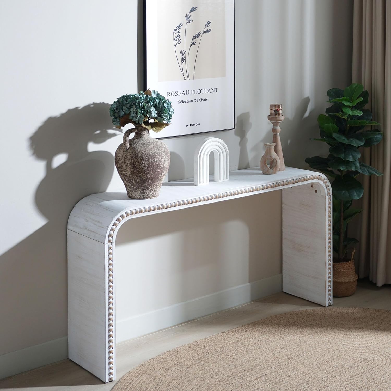 - 【Elegant Curved & Beaded Design】Enhance your living space with this console table's sophisticated curved silhouette and intricate wooden bead trim. The waterfall-style frame offers a unique, elegant look, adding a touch of organic charm to any room.