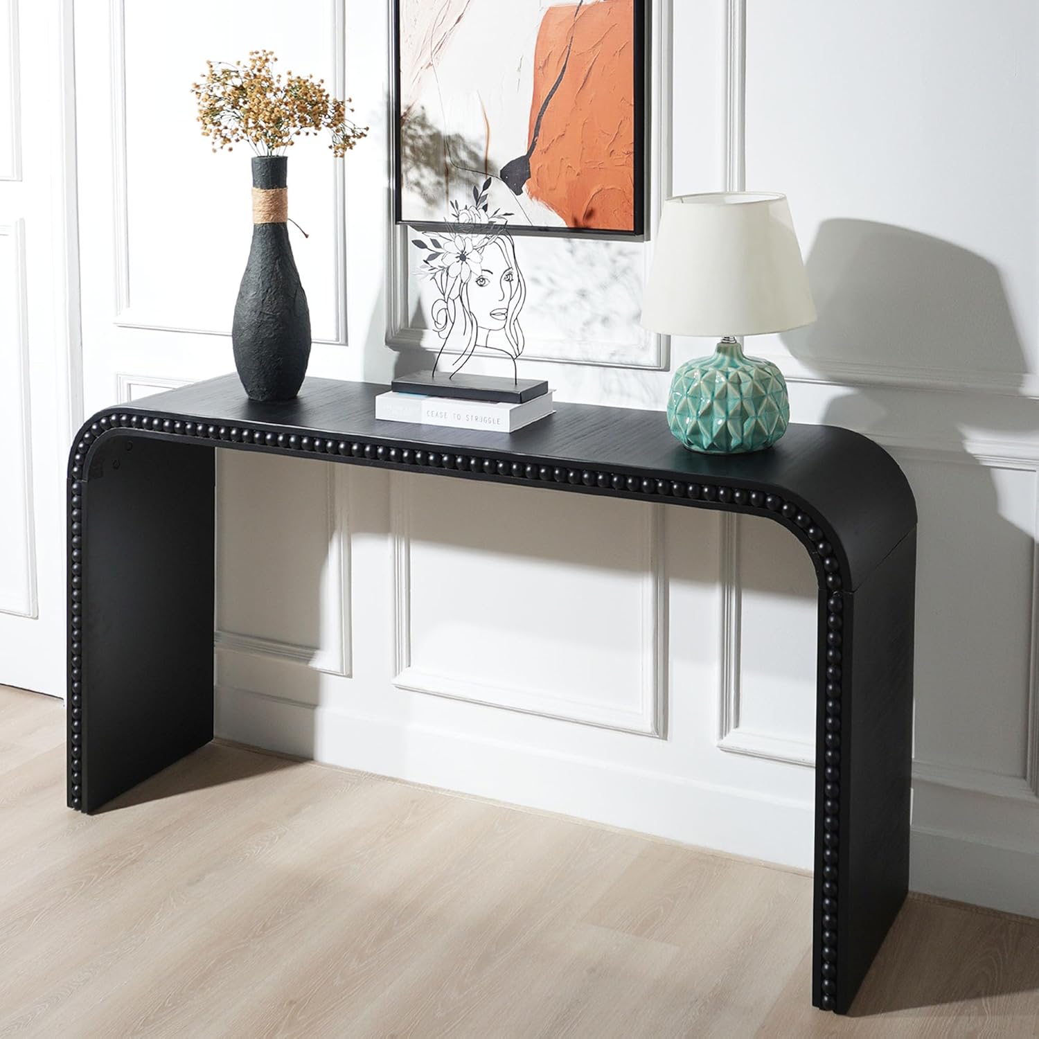 - 【Elegant Curved & Beaded Design】Enhance your living space with this console table's sophisticated curved silhouette and intricate wooden bead trim. The waterfall-style frame offers a unique, elegant look, adding a touch of organic charm to any room.