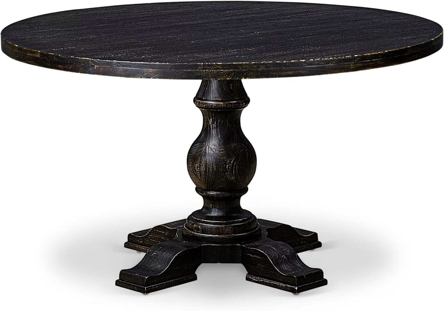 - DINING ROOM TABLE: Our breakfast table exudes timeless elegance with its Sand Blasted Black tabletop and graceful pedestal base, blending sophistication with style. The smooth finish accentuates its classic appeal, making it a stunning addition to any dining area. Featuring a spacious round tabletop for comfortable meals and gatherings, its robust base ensures outstanding durability and stability, seamlessly complementing diverse interior décors.