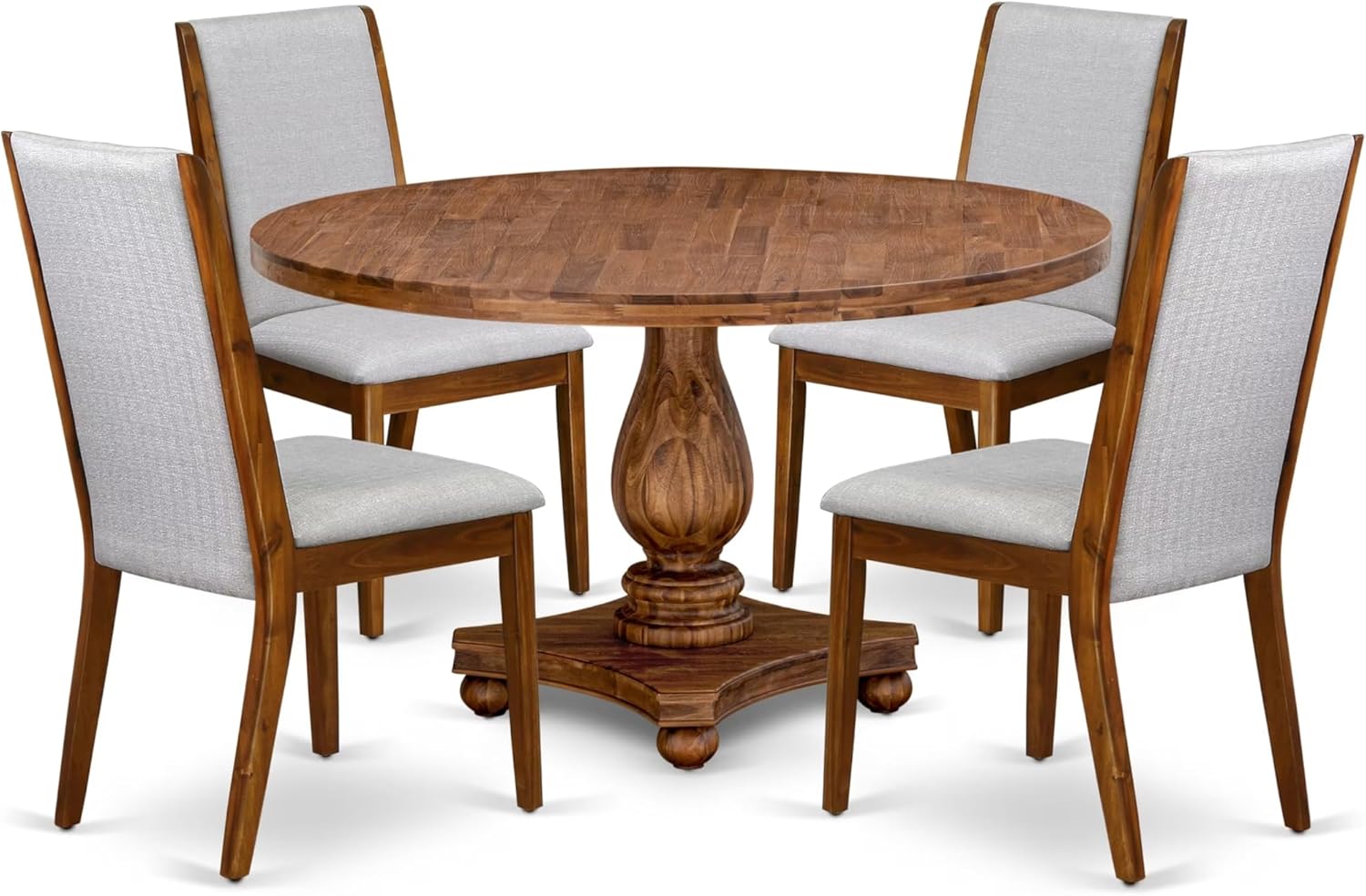 I2LA5-50N-05 - 5-Piece Mid Century Dining Set Includes A Table and 4 Grey Polyester Fabric Mid Century Dining Chairs with High Back, Antique Walnut